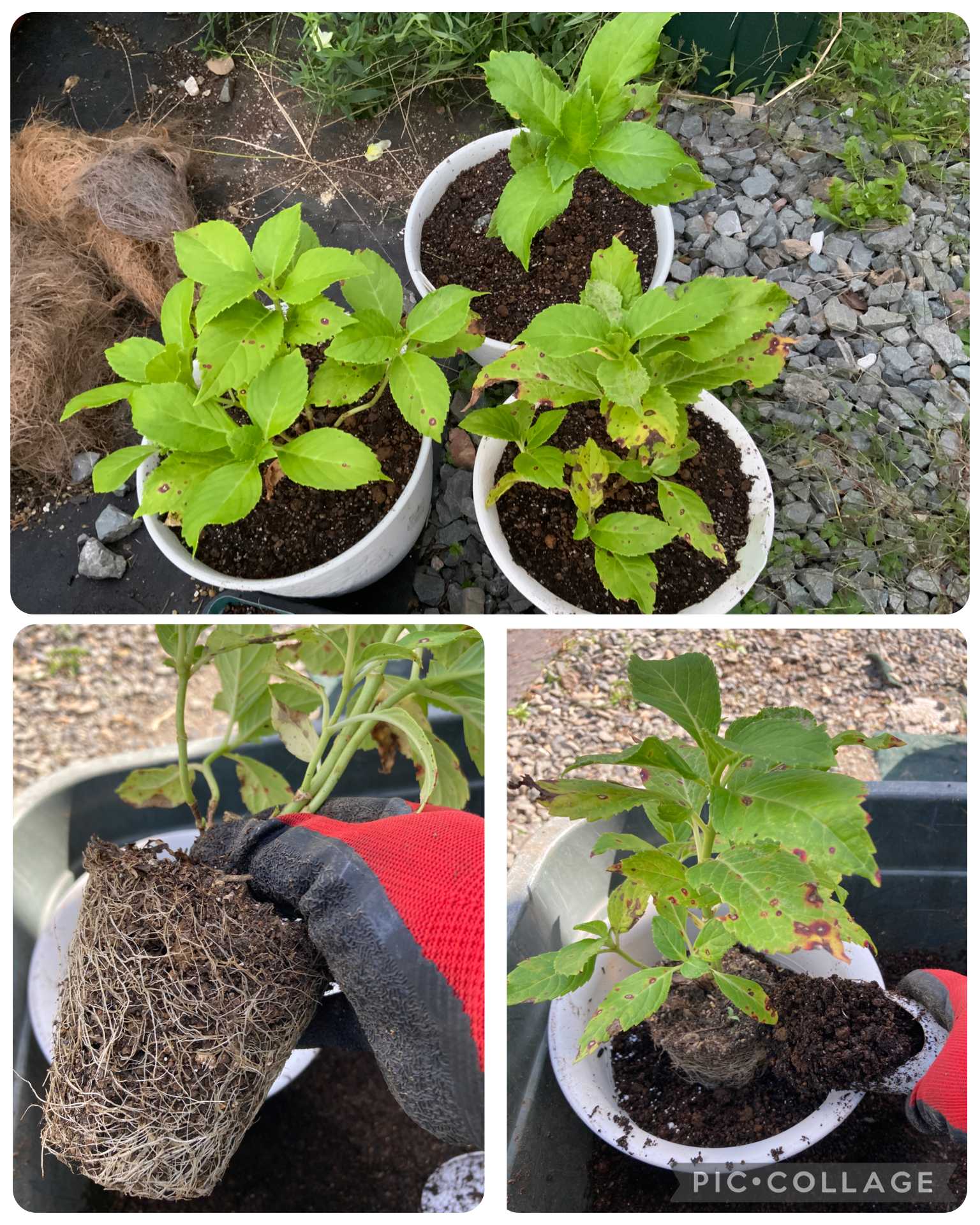今日は10月10日以前は体育の日でお休みだった日1年の内で一番雨が少ない日だったからということで決まったそうです本当に秋晴れの気持ちいい1日でした☀️6月に挿木して鉢増しした紫陽花葉に斑点がでてきています鉢から抜くと根がパンパンでした大急ぎで土を作って9号鉢に植替えです今だとまだまだ暖かい日が続くので冬までにしっかり成長すると思います♪ついでに買ったままで置いてあった菊苗も鉢増しです花を切った方がいいのかなぁ?とか思案中です切った方が根に負担がかからないのはわかっているのですがなんか惜しい😅種を蒔いたアグロステンマがポット上げの時期ですね時期を逃すとヒョロヒョロの苗になってしまいますポットに土を入れて元肥のマグァンプkとオルトランを入れて根を痛めないように1本ずつ丁寧に植えましたちょうどトレー1杯分24本できました今日の薔薇です今「えひめAI」がお気に入りです今日は500倍溶液を20ℓ作って薔薇の葉に散布しましたヾ(@⌒ー⌒@)ノ