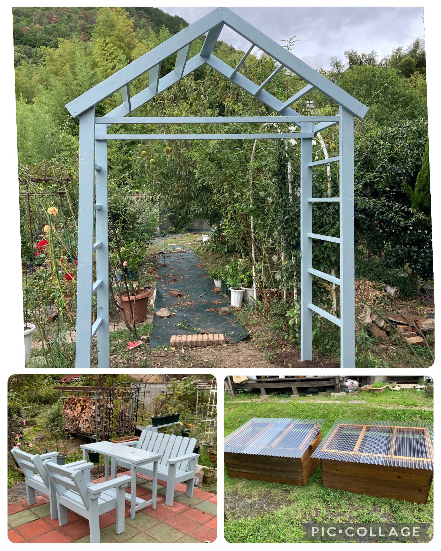 夏休みも後1日となりました今年の夏は暑すぎて午後に外作業ができず草引きだけで過ぎてしまいました今日の午後も強烈な暑さで5時を過ぎても西日がギラギラでした去年の7月〜9月にかけてのDIYですキエーロ2台やガーデンセットを完成させて作った三角屋根アーチは9月の末に設置しました9月の残暑はどんな感じでしょうか?気温が25度くらいにならないとなかなか機械を使ってDIYをする気になれませんね気温が高いので薔薇が一気に咲いて一気に散っていきますレッドクイーンです花が咲く前に夏剪定になるのかと思っていましたがすごく早く咲きました花が見れてよかったです色も形も春に近い状態ですねさて今日も草引きです↓猿梨の棚下ですここは防草シートを引いているにも関わらずジャングルになってますここから花壇中央の草引きです薔薇の後ろ側の剪定のための草引きですテッラコッタに入っているユーカリをのけてスッキリとさせました冬に芍薬を掘り起こし球根を移動させたので広い空間ができましたここからバケツの方向に向かって道をつけようかなと思っています防草シートを敷いてレンガブロックを置く簡単な道ですが両脇にある薔薇の花がら摘みや切り戻しの時などに便利になると思います夏休みは終わりますが草が生えるまでに実行です❗️お楽しみに🎉
