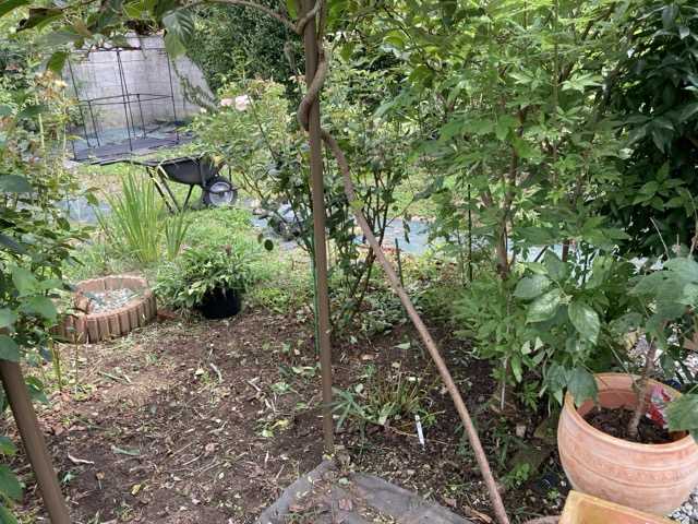 薔薇の後ろ側の剪定のための草引きです