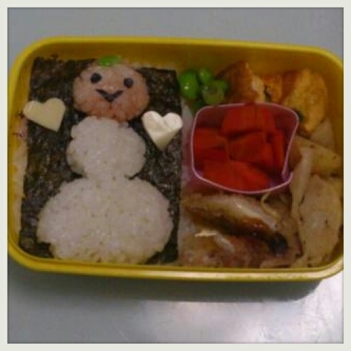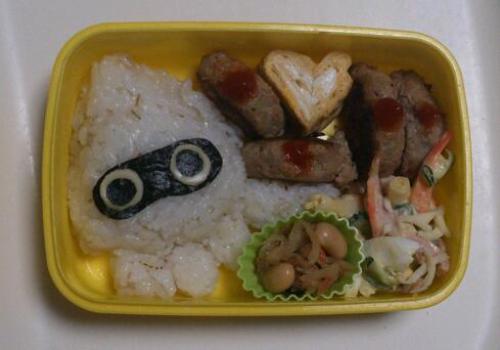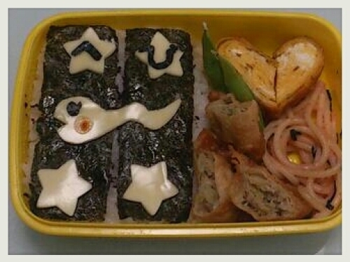 昨日今日と、あいにくのお天気で、とても肌寒く感じます~~今日は靴下を2枚履きですっ今日はマリオシリーズということで、ゲッソーを作ってみました。娘はお弁当を見て、『ププッ』と笑ってましたよ~。ご飯と海苔、チーズだけでできるので意外と簡単で良かったです 今日は午後から急きょ、幼稚園の役員会に参加することになりました~。年長さんのお別れ会の時に流すDVDを作るのに、役員さんの中にパソコンが得意な人が誰1人いなかったので私にお話が回ってきまして。入園からの成長記録をまとめたDVDを作るという大役を仰せつかりました~今日はその打ち合わせがあるということで、私は役員さんではないんですが、行ってまいります~