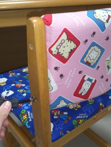 ☆いつも遊びに来てくれてありがとうございます☆☆良ければ応援クリックをお願いします☆にほんブログ村今日も朝から寒いですね~滅多に雪なんて降らない地域なんですが、午後から雪マークがついてました~今日は園庭で遊ばずに早く帰りたいものです。。。さてさて、私の妹の学習机をいただいた娘ですが、遠い昔にうちの母が椅子カバーを自分で替えたそうなんです。それからもう20年くらい経ってるということで、私も娘の好きなキャラクターの布を買ってきて椅子のカバーを作りました~~何とも昭和チックな布なんですが、背もたれを外してるところです。これで完成です~~。娘が選んだのはマリオの布でした~椅子の背もたれや座面を外してカバーを付け替えるなんて、これは立派なDIY???なんて勝手に思ってるんですが、どうなんでしょう娘が気に入ってくれたので、それが1番良かったです