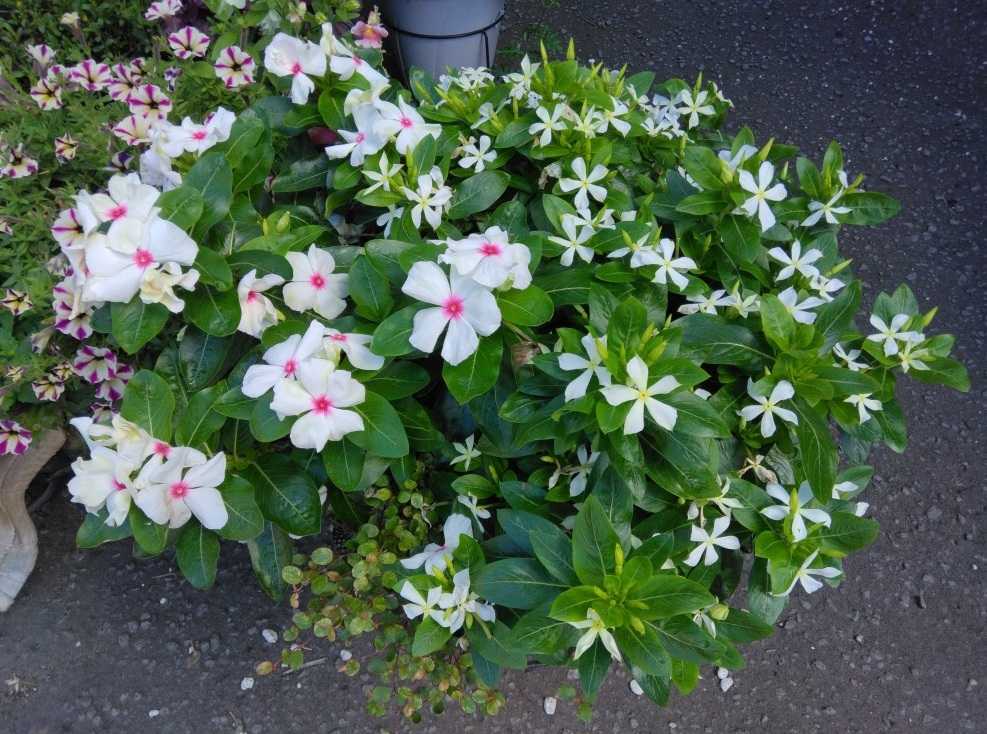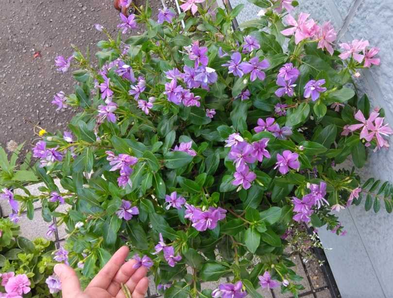 水やりしながらほんとにでっかくなったなぁと思うニチニチソウ
