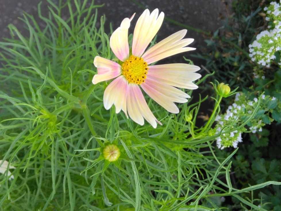 種まきのひまわりとコスモスが咲いてきた