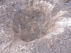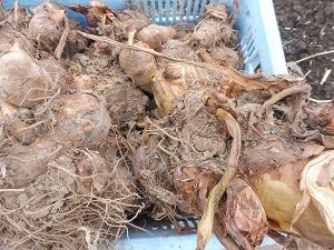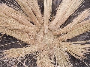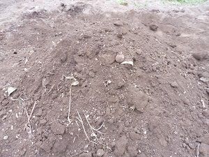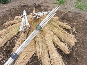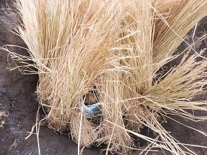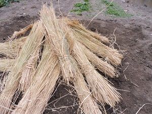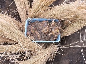 土の中に藁を敷きその上にもみ殻を入れ凍みないように土を入れ保存しました。