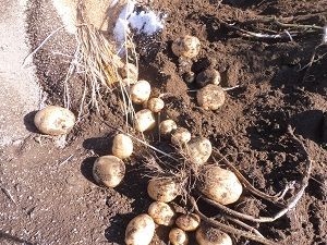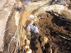 今年もよろしくお願いします。正月、三が日も過ぎましたので畑に行き、ジャガイモ堀りをしました。雪が少しありました...ジャガイモは、凍みていませんでした。藁ともみ殻をかぶせたことは、効果があったかもしれません。