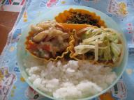 今日の幼稚園は、お弁当持って、近くの公園へ。でも、あいにくの雨で中止に。なったのに、幼稚園へ送って、家に着く頃には晴天になってたー。残念。お弁当の時は、必ず卵焼きをリクエストする。しかも自分で焼くと。今日は、他のも全部お手伝いする!というので、なんとか卵焼きだけで許してもらった。ゆう君は、卵割って、ほぐして、フライパンに入れるまでなんだけどね。でも、何分かかったんだろう・・・。朝から疲れたと思いきや、今度は、夕飯の準備の時にひろ君がやる~!とりあえず、キャベツちぎってもらっていたら、包丁を使いたい!とのこと。しかながないので、プラスチックの切れない包丁持たせたら、なんとか切ってた。あら。お次はたまねぎ切って、シメジほぐして、おいしいスープができました。いつもこんな風にやらせてあげられるといいんだけどね~。将来が楽しみ!???
