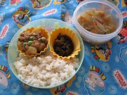 本日のお給食ご飯納豆なぜかモズクで代替五目スープ煮ジャガイモのそぼろ和え<ジャガイモのそぼろ和え>豚ひき肉はゆでておく。鍋にジャガイモとグリンピース、ひたひたの水を入れて、塩をぱらり。水分が少し残っているところにひき肉を入れて、醤油(みりん)をじゅわぁ。母のお楽しみ。お夕飯の残りのたかきびハンバーグとっても久しぶりに食べたくなったんだけど、今までで一番おいしくできた!子供たちにも好評帰宅後、ザリガニ探しに行ったゆう君。お友達は先に2匹ゲット。悔しいゆう君は、なかなか帰れず、お約束の時間より30分オーバーで強制終了。結局おこちゃったけど、こういうのって気持ちが分かるだけに、母もつらい。
