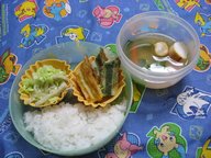 5月1日から始まったお給食。お兄ちゃんが通っていた、完全給食の地元の幼稚園へ通うことにしたので、完全お弁当で。給食のメニューをまねて作ることにしました。乳製品、卵、大豆、その他そば、ピーナッツなど怖いの除去中の我が家です。本日の献立ご飯 ちくわの2色揚げ ポリポリあえ しんじゃがのみそ汁こんな感じでいかがかしら