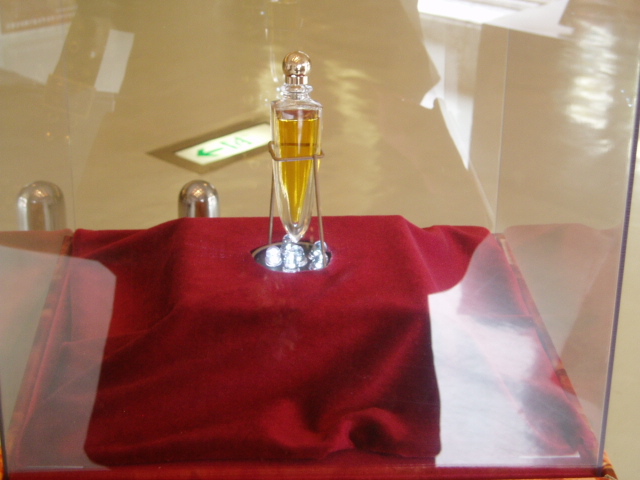 土曜日は、やっくんが出るということで、楽しみでした。ラジオもあったので、録音・録画をしながら見ることに。我が家のTVも参加ができると言うので、参加しました。はじめは、食事の支度があったので、息子に任せました。なかなかやり方がわからず、さらに、ボタンが、うさぎにかじられ、反応おそっ!!いきなりミニ駅伝でしたね。その場で応援したかったな。娘と、「やっくんがんばれ!」って応援していました。が、やっくん途中から調子がよくなく、最後なかなか戻ってきませんでした。すご~く心配・・・・。悔しそうにがんばって走っている姿は、涙ウルウルでした・・・。調子がよくないって言ってたに、後でブログ読んだら、前から、宣伝のため決まっていたそうです。かわいそうに・・・。ずっと出てこなかったので、すごく心配しましたが、宣伝で戻ってきたので、一安心。旦那に、「お前は馬鹿か」って言われたよ。心の中で、(旦那より、やっくんが心配なんでよ!)といってました。途中お風呂タイム順番に入り、クイズに参加していました。エンタの時間は、やっくんでないしね。その後30分しか出られず、やっくん最下位でした。途中、旦那に変わったら、ボタンが押せなくて、だめで、やっくんと同じ列の順位でした・・・。まあ、一緒に載っているので、良いかと思ったけど。その後私に代わり、挽回して、201人中164位でした。参加面白いね。ネットにつなげれば、全国の人とも競えるそうです。最新型TVにして良かった。 で、昨日は、チケットが当たったので、「パフューム」見て来ました。映画の日で、1000円でしたのね・・・。少し損した気分。そのせいか、もう公開から経っていますが、お客さん来ていました。思ったより・・・。でした。悲しいのか、楽しいのか、かわいそうなのか、なんともいえない映画でした。唯一良かったのは、香水の作るシーン(普通のネ)今にも香りが漂ってきそうでした。結構気持ち悪かったり、エロかったりしたけど。まあ、やっくんの香水作りのやり方が分かっただけ良いか。これが飾ってありました。