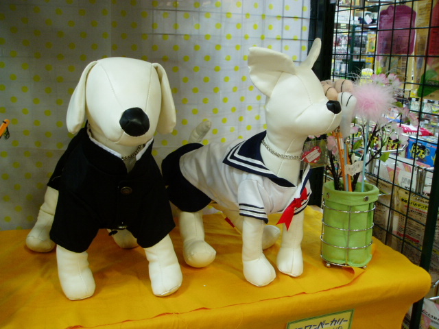 日曜日、お笑いライブに行ったとき、帰りにペットショップ「コジマ」が入っているので、おはなちゃん(うさぎ)のお土産に、毎回、かじり木を買いに行きます。ついでに、いろいろな動物を見るのが楽しみです。犬・ネコ・うさぎ・ハムスターといろいろ。癒されますね。そして、犬用にこんな洋服まであったので、写真にとって見ました。学生服です。セーラー服かわいい。この衣装はどうしても、やっくんを考えてしまいます。