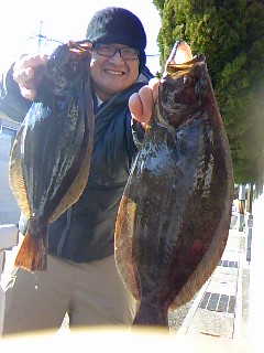 外房大原港~ 今年最後のヒラメに出船しました。 (^^)v 風が強かったので (;^_^A 場所は大原港近く ε=┏( ・_・)┛ 水深は8m~17mを狙いました p(^^)q 今年最後の釣果は 大きさ 0.5kg~2.2kgのヒラメを 0枚~2枚でした。 (^^ゞ お客さん全員にヒラメの姿を見せることが出来ませんでした m(__)m ヒラメを2枚、誇らしげに持っているのは、義弟(わが息子・盛高の叔父)のJ君です \(^O^)/ ヒラメ初挑戦でゲット (^^)v たいしたもんです (^.^)b 今年、乗船して頂いたお客さんに 感謝感謝です m(__)m また、来年も 釣り船・勇盛丸を よろしくお願いします m(__)m 出船予定ですが 年明け 初出船 1月5日の火曜日は ヒラメに出船いたします \(^O^)/ 今のところ5名のお客さんから予約を頂いておりますm(__)m 1月10日の日曜日は ヒラメに出船いたします ε=┏( ・_・)┛ 今のところ4名のお客さんから予約を頂いておりますm(__)m この日の午後からは 一つテンヤのシャクリマダイに出船いたします (☆。☆) 今のところ3名のお客さんから予約を頂いておりますm(__)m 1月24日の日曜日は ヒラメに出船いたします (^.^)b おかげさまで満船になりました~\(^O^)/ ありがとうございます m(__)m お知らせです↓ 12月1日から投入時間が午前6時00分となりました そのため集合時間は午前5時00分になりますので宜しくお願いします。 年明けは5日から出船いたします ε=┏( ・_・)┛ 今年もヒラメは 乗合限定12名までの乗船 仕立ては16名までの乗船とさせていただきます m(__)m 希望でヒラメ&鬼カサゴのリレー釣り と シャクリマダイの午後船 も出船しようと思ってます(^^)v 好調になりつつあるヒラメ釣りに…… ぜひ挑戦してみてくださいm(__)m ご予約 お待ちしております p(^^)q お客さんへのお願いです m(__)m↓ 勇盛丸では、常にお客さんの安全を考えて操業しております p(^^)q 【安全1番・楽しさ2番・最後に釣果はついてくる♪♪♪】《文明堂カステラのCMのパクリですが…(;^_^A》 をテーマに 命を預かる商売ですので、いつも慎重かつ冷静な操船を心がけております。 その為には、お客さんのご協力が必要不可欠ですので…… 生意気な言い方かもしれませんが 海の上では、マナーと船長の指示を必ず守って下さるよう、お願いいたします m(__)m