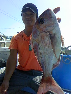 外房大原港~ 一つテンヤのシャクリマダイに出船しました (^^)v 海が悪いので 港近くで始めました p(^^)q が その場所では 大きさ0.8kgのマダイが 1枚 (;^_^A その後 少し凪になったので沖へ出しました ε=┏( ・_・)┛ 前回に超大型マダイ9.1kgを釣ったポイントへ ε=┏( ・_・)┛ が・・・ 小サイズのマダイが 3枚~7枚 釣れただけとなりました (;^_^A 沖上がりの時間になり ふと魚群探知機を見ると………………… 反応がビッシリ (☆。☆) すると…………… お客さんの叫ぶ声が………… 『船長・キタ~』 見事\(^O^)/ 大きさ2.7kgのマダイをゲット \(^O^)/ 魚群探知機の反応の中に混じってました \(^O^)/ 最後の最後に 良型が来ましたね (^.^)b 出船予定です ………↓……… 9月18日の土曜日は 一つテンヤのシャクリマダイに出船いたします (☆。☆) 今のところ2名のお客さんから予約を頂いております m(__)m 9月19日は日曜日は サバ&スルメイカに出船いたします p(^^)q 今のところ3名のお客さんから予約を頂いております m(__)m この日の午後からは一つテンヤのシャクリマダイに出船いたします (^^)v 今後の釣り物予定です ………↓……… メインで 釣って頂いたスルメイカを餌に 【スルメイカ生き餌の泳がせ釣り】 と 外道も楽しめる 【鬼カサゴ】 に出船いたします。 p(^^)q いずれも10名までの乗船とさせて頂きます m(__)m ご予約お待ちしております(^.^)b お客さんへのお願いです m(__)m ………↓……… 勇盛丸では、常にお客さんの安全を考えて操業しております p(^^)q 【安全1番・楽しさ2番・最後に釣果はついてくる♪♪♪】《文明堂カステラのCMのパクリですが…(;^_^A》 をテーマに 命を預かる商売ですので、いつも慎重かつ冷静な操船を心がけております。 その為には、お客さんのご協力が必要不可欠ですので…… 生意気な言い方かもしれませんが 海の上では、マナーと船長の指示を必ず守って下さるよう、お願いいたします m(__)m 。