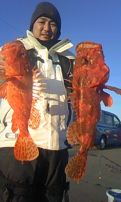 外房大原港~ 鬼カサゴに出船しました (^^)v ポイントは大原沖~岩船沖 (☆。☆) 水深は170mから、スタートしました (≧▼≦) 潮の流れがないっ (;^_^A なので 水深150mの場所へ移動 ε=┏( ・_・)┛ ピンポイント凸凹作戦発動 ( -_-) 作戦開始後 型は出たのですが (^^ゞ 数が伸びなくて……… (;^_^A 苦戦 (>_<) なので 110mの場所へ移動 ε=┏( ・_・)┛ 多種の魚を狙い (☆。☆) 鬼カサゴも数匹釣れました (^.^)b 釣果は 大きさ0.5kg~1.8kgの 鬼カサゴを 0匹~3匹(3匹は2名) (^^ゞ 外道で メダイ のどぐろ はちカサゴ も釣れました (^.^)b お客さん全員にメインを釣らせることができず (>_<) 悔しいです (T_T) 出船予定です ………↓……… 明日・2月17日の木曜日は ヤリイカに出船いたします (^^)v 今年のヤリイカ初出船ですね 今のところ4名のお客さんから予約を頂いております m(__)m 2月19日の土曜日は ヤリイカ&鬼カサゴに出船いたします (≧▼≦) 今のところ6名のお客さんから予約を頂いております m(__)m 2月20日の日曜日は ヒラメに出船いたします (☆。☆) 今のところ8名のお客さんから予約を頂いております m(__)m 2月22日の火曜日は ヒラメに出船いたします (≧▼≦) 今のところ1名のお客さんから予約を頂いております m(__)m この日の午後からは 一つテンヤのシャクリマダイに出船いたします (^^)v 今のところ4名のお客さんから予約を頂いております m(__)m 2月23日の水曜日は ヤリイカ 又は状況次第でヤリイカ&イカの泳がせ に出船いたします (^^)v 今のところ2名のお客さんから予約を頂いております m(__)m 2月27日の日曜日は ヒラメ&一つテンヤのシャクリマダイに出船いたします (☆。☆) 今のところ2名のお客さんから予約を頂いております m(__)m 尚、勝手ながら 定員は10名までとさせていただきます m(__)m 今後の釣り物予定です ………↓……… メインはヒラメです (☆。☆) 希望でヒラメ&鬼カサゴ ヒラメ&一つテンヤのシャクリマダイ ショウサイフグ&ヒラメ 色々釣り物を組み合わせてみようと、思っております m(__)m ヤリイカも始めました (^.^)b ご予約お待ちしておりますm(__)m お客さんへのお願いです m(__)m ………↓……… 勇盛丸では、常にお客さんの安全を考えて操業しております p(^^)q 【安全1番・楽しさ2番・最後に釣果はついてくる♪♪♪】《文明堂カステラのCMのパクリですが…(;^_^A》 をテーマに 命を預かる商売ですので、いつも慎重かつ冷静な操船を心がけております。 その為には、お客さんのご協力が必要不可欠ですので…… 生意気な言い方かもしれませんが 海の上では、マナーと船長の指示を必ず守って下さるよう、お願いいたします m(__)m 。