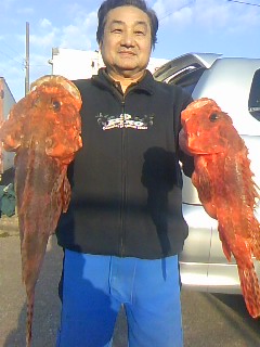 外房大原港~ 鬼カサゴに出船しました (^^)v 始めのポイントは大原沖です p(^^)q 釣り始めより、次第に潮が速くなったので………… (;^_^A 岩船沖へ場所移動 ε=┏( ・_・)┛ ポイント変更後 すぐに1kgクラスを型を見ました \(^O^)/ が………… このポイントも潮が速くなったので (;^_^A 灘へ場所移動 ε=┏( ・_・)┛ 岩船沖 水深110mのポイントで………… (☆。☆) 来ました~ \(^O^)/ 流すたびに型があって (≧▼≦) 最後の流しに 最大2.2kgの鬼カサゴをゲット \(^O^)/ 釣果は 大きさ0.8kg~2.2kg( 1.2kg~1.5kg主体)の鬼カサゴを 船中22匹 \(^O^)/ 外道で カンコ(1kg~3kgを7匹) メダイ 沖メバル のどぐろカサゴ マダコ マハタ と 豪華ゲストでした (^^)v 節分の日に 《鬼退治》 成功と言って、いいんじゃないですかね (^.^)b 潮が落ち着けば、深場も期待できますね (☆。☆) 出船予定です ………↓……… 明日・2月4日の金曜日は 一つテンヤのシャクリマダイに出船いたします (☆。☆) 今のところ2名のお客さんから予約を頂いております m(__)m 2月5日の土曜日は 一つテンヤのシャクリマダイに出船いたします (≧▼≦) 今のところ1名のお客さんから予約を頂いております m(__)m 2月6日の日曜日は 一つテンヤのシャクリマダイに出船いたします (☆。☆) 今のところ2名のお客さんから予約を頂いております m(__)m 2月10日の木曜日は ヒラメ&一つテンヤのシャクリマダイに出船いたします (^^)v 今のところ3名のお客さんから予約を頂いております m(__)m 2月11日の建国記念日は ヒラメに出船いたします (☆。☆) 今のところ1名のお客さんから予約を頂いております m(__)m 2月12日の土曜日は 鬼カサゴに出船いたします (^^)v 今のところ3名のお客さんから予約を頂いております m(__)m 2月13日の日曜日は ヒラメに出船いたします (☆。☆) おかげさまで満船となりました~ \(^O^)/ ありがとうございます m(__)m 2月16日の水曜日は 鬼カサゴに出船いたします (^^)v 今のところ4名のお客さんから予約を頂いております m(__)m 尚、勝手ながら 定員は10名までとさせていただきます m(__)m 今後の釣り物予定です ………↓……… メインはヒラメです (☆。☆) 希望でヒラメ&鬼カサゴ ヒラメ&一つテンヤのシャクリマダイ ショウサイフグ&ヒラメ 色々釣り物を組み合わせてみようと、思っております m(__)m ご予約お待ちしております(^.^)b お客さんへのお願いです m(__)m ………↓……… 勇盛丸では、常にお客さんの安全を考えて操業しております p(^^)q 【安全1番・楽しさ2番・最後に釣果はついてくる♪♪♪】《文明堂カステラのCMのパクリですが…(;^_^A》 をテーマに 命を預かる商売ですので、いつも慎重かつ冷静な操船を心がけております。 その為には、お客さんのご協力が必要不可欠ですので…… 生意気な言い方かもしれませんが 海の上では、マナーと船長の指示を必ず守って下さるよう、お願いいたします m(__)m 。