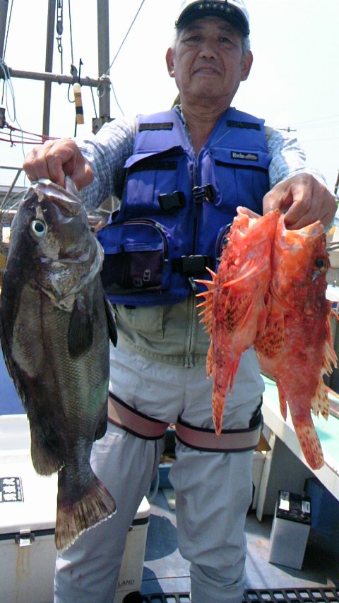 外房大原港~ オニカサゴに出船しました (^^)v ポイントは大原沖 ε=┏( ・_・)┛ 水深は120m~100mを狙いました (☆。☆) 釣りはじめからポツポツ釣れて……………… (≧▼≦) 大きさ0.7kg~1.6kgのオニカサゴを (^.^)b 船中 6匹 (^^)v その他外道で メダイ 高級外道ノドグロ ハチカサゴ カンコ 5kgのアラw(°O°)w も釣れました (^^ゞ いい釣行になったと思います (^.^)b お知らせです ………↓……… お盆明けは8月17日からの出船となります (≧▼≦) 今後の釣り物予定です ………↓……… 一つテンヤのシャクリマダイ Lightタックル・イサキ をメインに 鬼カサゴ はもちろん アジ生き餌の泳がせ釣り スルメイカ&Lightタックル・イサキ は状況を見ながら判断したいと思います (^^)v こうゆう時なので お客さんの日頃のストレス発散に 少しでも役立てればいいと思っております ご予約お待ちしておりますm(__)m お客さんへのお願いです m(__)m ………↓……… 勇盛丸では、常にお客さんの安全を考えて操業しております 【安全1番・楽しさ2番・最後に釣果はついてくる♪♪♪】《文明堂カステラのCMのパクリですが…(;^_^A》 をテーマに 命を預かる商売ですので、いつも慎重かつ冷静な操船を心がけております。 その為には、お客さんのご協力が必要不可欠ですので…… 生意気な言い方かもしれませんが 海の上では、マナーと船長の指示を必ず守って下さるよう、お願いいたします m(__)m