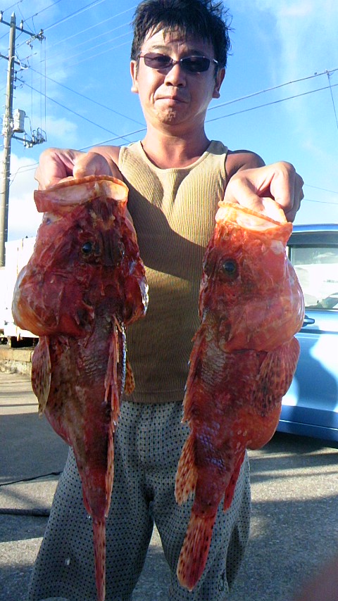 外房大原港~ 一つテンヤ~オニカサゴに出船しました (^^)v 最初は一つテンヤのシャクリマダイです p(^^)q ポイントは岩船前 ε=┏( ・_・)┛ 水深は15m~7mを狙いました (☆。☆) 釣り始めから2流しで……… 大きさ 0.5kg~1.2kg(1kg級 3枚)のマダイを ゲット (^^)v でも…………… その後は餌取りばかりで………… (;^_^A 当たらない (>_<) なので 8時半に オニカサゴのポイントへ場所移動 ε=┏( ・_・)┛ 9時半に到着 p(^^)q ポイントは岩船沖 (☆。☆) 水深は120m~160mを狙いました (^^)v 釣り始めから早々に 大きさ2kg弱のオニカサゴをゲット \(^O^)/ 潮が速かったですが………… (;-_-+ そこは我慢 ( -_-) すると徐々に潮が止まり始めて……… (^.^)b 丁度良い流れに (☆。☆) その後は調子よく (≧▼≦) 時間までに 大きさ2kgサイズのオニカサゴを……… 5匹釣ってくれました \(^O^)/ その他 大きさ1.2kg~1.6kgのオニカサゴも釣ってくれて (^^)v 外道で カンコ 高級外道ノドグロカサゴ多数 沖メバル と クーラーに入りきれない お客さんも出ました w(°O°)w 日射しが強くて、暑い日でしたが いい釣行になったと思います。 (^.^)b 出船予定です ………↓……… 明日・9月18日の日曜日は アジ生き餌の泳がせ釣りに出船いたします (≧▼≦) 今のところ3名のお客さんから予約を頂いております m(__)m 9月18日の午後からは 一つテンヤのシャクリマダイに出船いたします (^^)v 今のところ6名のお客さんから予約を頂いております m(__)m 9月19日の日曜日は 第三月曜日ですが、出船しますので ご予約お待ちしておりますm(__)m 関東随一 大原裸祭りに伴う 祭り休みですが 9月23日の金曜日~9月26日の月曜日となっております。 大漁祈願祭を兼ねたお祭りですので ご了承ください m(__)m 今後の釣り物予定です ………↓……… 一つテンヤのシャクリマダイ Lightタックル・イサキ をメインに 鬼カサゴ はもちろん アジ生き餌の泳がせ釣り スルメイカ&Lightタックル・イサキ は状況を見ながら判断したいと思います (^^)v こうゆう時なので お客さんの日頃のストレス発散に 少しでも役立てればいいと思っております ご予約お待ちしておりますm(__)m お客さんへのお願いです m(__)m ………↓……… 勇盛丸では、常にお客さんの安全を考えて操業しております 【安全1番・楽しさ2番・最後に釣果はついてくる♪♪♪】《文明堂カステラのCMのパクリですが…(;^_^A》 をテーマに 命を預かる商売ですので、いつも慎重かつ冷静な操船を心がけております。 その為には、お客さんのご協力が必要不可欠ですので…… 生意気な言い方かもしれませんが 海の上では、マナーと船長の指示を必ず守って下さるよう、お願いいたします m(__)m