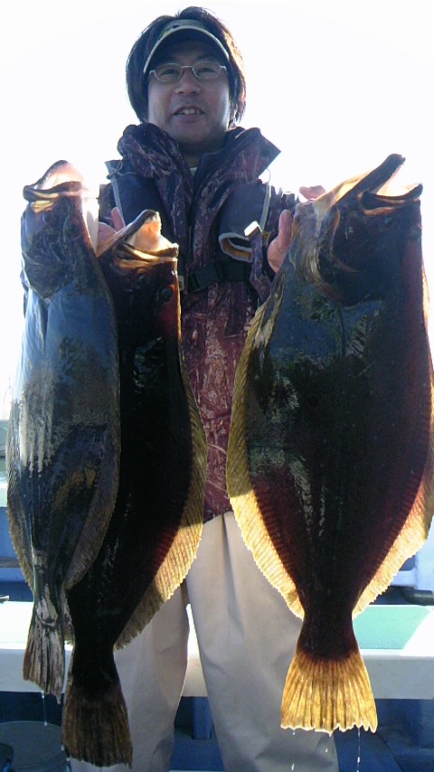 外房大原港~ ヒラメに出船しました (≧▼≦) ポイントは太東沖~大原港近く ε=┏( ・_・)┛ 始めは太東沖です p(^^)q このポイントで……………… 大きさ1.8kgと1.6kgのヒラメサイズをゲット (^^)v このまま調子よく………………とは行かず (;^_^A その後は食いが渋くなってしまいました (>_<) なので場所移動 ε=┏( ・_・)┛ 最後のポイントは大原港近くです (☆。☆) 下がっていた水温も上昇して 〓〓〓 ソゲサイズを4枚ゲットしました (^^)v 釣果は 大きさ0.8kg~1.8kgのヒラメ(ソゲ)を 1枚~2枚 (≧▼≦) 釣り上げてくれました (^.^)b 今後、浅場の大型狙いが楽しみですね (☆。☆) 出船予定です ………↓……… 12月20日の火曜日は 朝10時出船で、一つテンヤのシャクリマダイに出船いたします (^^)v 今のところ4名のお客さんから予約を頂いております m(__)m 12月21日の水曜日は 鬼カサゴに出船予定です 3名からの出船で、現在2名のお客さんから予約が入っておりますので、あと1名から出船いたします m(__)m 12月23日の金曜日は ヒラメ&一つテンヤのシャクリマダイに出船いたします p(^^)q 今のところ10名のお客さんから予約を頂いております m(__)m 12月29日の木曜日は 鬼カサゴに出船いたします (^^)v 今のところ5名のお客さんから予約を頂いております m(__)m 12月30日の金曜日 ヒラメ&一つテンヤのシャクリマダイに出船いたします (^^)v 今のところ4名のお客さんから予約を頂いております m(__)m その他の日はまだ予約が入っておりませんので (;^_^A 出船予定の日も含め、乗船のお問い合わせを、お待ちしております m(__)m 今後の釣り物予定です ………↓……… メインでヒラメ その他 一つテンヤのシャクリマダイ オニカサゴ にも 出船いたします。 ご予約お待ちしております m(__)m 尚、ヒラメの乗り合いは12名までとさせていただいておりますので、ご了承ください m(__)m お客さんへのお願いです m(__)m ………↓……… 勇盛丸では、常にお客さんの安全を考えて操業しております 【安全1番・楽しさ2番・最後に釣果はついてくる♪♪♪】《文明堂カステラのCMのパクリですが…(;^_^A》 をテーマに 命を預かる商売ですので、いつも慎重かつ冷静な操船を心がけております。 その為には、お客さんのご協力が必要不可欠ですので…… 生意気な言い方かもしれませんが 海の上では、マナーと船長の指示を必ず守って下さるよう、お願いいたします m(__)m