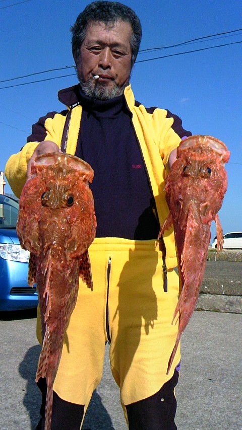 外房大原港~ 鬼カサゴに出船しました (^^)v ポイントは岩船沖 ε=┏( ・_・)┛ 水深は180m~200mを狙いました (☆。☆) 潮も丁度良く流れて…………… (≧▼≦) 海も穏やかで (^.^)b いいコンディションの中、釣っていると (●^ー^●) 来ました~ \(^O^)/ ジャンボ鬼カサゴ (^^)v 2.6kg \(^O^)/ その他1.6kg~2kg級も釣り上げてくれて (^^)v 鬼カサゴ・船中15匹 \(^O^)/ 外道で メダイ2kg~4.5kg カンコ1kg~3.5kg も釣れました (^.^)b 天気もよくて ☆彡☆彡☆彡 いい釣行になったと思います (≧▼≦) 出船予定です ………↓……… 明日・12月30日の金曜日 ヒラメ&一つテンヤのシャクリマダイに出船いたします (^^)v おかげさまで満船となりました~ \(^O^)/ ありがとうございます m(__)m 12月31日の大晦日は ヒラメに出船いたします p(^^)q 今のところ5名のお客さんから予約を頂いております m(__)m その他の日はまだ予約が入っておりませんので (;^_^A 出船予定の日も含め、乗船のお問い合わせを、お待ちしております m(__)m 今後の釣り物予定です ………↓……… メインでヒラメ その他 一つテンヤのシャクリマダイ オニカサゴ にも 出船いたします。 ご予約お待ちしております m(__)m 尚、ヒラメの乗り合いは12名までとさせていただいておりますので、ご了承ください m(__)m お客さんへのお願いです m(__)m ………↓……… 勇盛丸では、常にお客さんの安全を考えて操業しております 【安全1番・楽しさ2番・最後に釣果はついてくる♪♪♪】《文明堂カステラのCMのパクリですが…(;^_^A》 をテーマに 命を預かる商売ですので、いつも慎重かつ冷静な操船を心がけております。 その為には、お客さんのご協力が必要不可欠ですので…… 生意気な言い方かもしれませんが 海の上では、マナーと船長の指示を必ず守って下さるよう、お願いいたします m(__)m