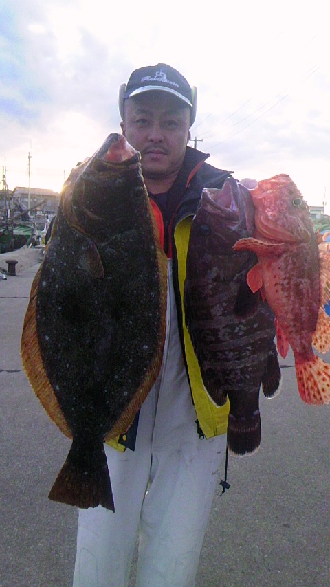 外房大原港~ ヒラメ&鬼カサゴに出船しました (^^)v 始めはヒラメです p(^^)q 鬼カサゴのポイントへの、場所移動の時間を考慮しながら 大原沖 ε=┏( ・_・)┛ 水深23m~40mと 65m~75mを狙いました (☆。☆) このポイントで 良型のマハタ2kg~3kgを3本ゲット (^^)v その後、深場へ場所移動して ε=┏( ・_・)┛ そこで…………… 1.2kg \(^O^)/ 1.5kg \(^O^)/ 2.6kg \(^O^)/ メインのヒラメゲット! その他も、またまた3kgの マハタをゲット (^^)v 外道で ジャンボ アイナメ マトウダイ キントキ も釣れました (^.^)b 9時半からは鬼カサゴです p(^^)q ポイントは岩船沖 ε=┏( ・_・)┛ 水深は160m~180mを狙いました (^^)v 流すたびに ☆彡☆彡☆彡 良型の、大きさ1.5kg~2kgクラスの鬼カサゴを 15時までに3匹~6匹 \(^O^)/ 船中18匹釣ってくれました m(__)m 外道で 3キロ級カンコ 2kg~4kgのメダイ 高級外道のノドグロカサゴ も釣れました (^.^)b お客さんに喜んで頂いて (≧▼≦) 満足の行く1日でしたね (^^)v 出船予定です ………↓……… 12月18日の日曜日は ヒラメに出船いたします (☆。☆) 12月23日の金曜日は ヒラメ&一つテンヤのシャクリマダイに出船いたします p(^^)q 今のところ10名のお客さんから予約を頂いております m(__)m 12月29日の木曜日は 鬼カサゴに出船いたします (^^)v 今のところ5名のお客さんから予約を頂いております m(__)m 12月30日の金曜日 ヒラメ&一つテンヤのシャクリマダイに出船いたします (^^)v 今のところ4名のお客さんから予約を頂いております m(__)m その他の日はまだ予約が入っておりませんので (;^_^A 出船予定の日も含め、乗船のお問い合わせを、お待ちしております m(__)m 今後の釣り物予定です ………↓……… メインでヒラメ その他 一つテンヤのシャクリマダイ オニカサゴ にも 出船いたします。 ご予約お待ちしております m(__)m 尚、ヒラメの乗り合いは12名までとさせていただいておりますので、ご了承ください m(__)m お客さんへのお願いです m(__)m ………↓……… 勇盛丸では、常にお客さんの安全を考えて操業しております 【安全1番・楽しさ2番・最後に釣果はついてくる♪♪♪】《文明堂カステラのCMのパクリですが…(;^_^A》 をテーマに 命を預かる商売ですので、いつも慎重かつ冷静な操船を心がけております。 その為には、お客さんのご協力が必要不可欠ですので…… 生意気な言い方かもしれませんが 海の上では、マナーと船長の指示を必ず守って下さるよう、お願いいたします m(__)m