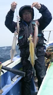 外房大原港~ ヤリイカに出船しました (^^)v ポイントは勝浦沖 ε=┏( ・_・)┛ 水深は110mを狙いました (☆。☆) 1流し目は不発 (>_<) 2流し目に……………… 大型ヤリイカを3点・4点掛け \(^O^)/ しかし………… その後は型程度 (;^_^A 反応を探して見るが (・・?) 1回限り (>_<) その後、水深140mのポイントで乗り出したとの情報が入ったので (☆。☆) 場所移動 ε=┏( ・_・)┛ 場所に着くと…………………… すぐに5点・6点・最高8点掛け! \(^O^)/ 10時半までに、大型ヤリイカを 15杯~43杯釣ってくれました (^^)v 出船予定です ………↓……… 4月21日の土曜日は ヒラメ&ハタに出船いたします (^^)v 今のところ5名のお客さんから予約を頂いております m(__)m この日の午後からは 一つテンヤのシャクリマダイに出船いたします (^^)v 今のところ5名のお客さんから予約を頂いております m(__)m 4月22日の日曜日は ヒラメ&一つテンヤのシャクリマダイに出船いたします (☆。☆) 今のところ3名のお客さんから予約を頂いております m(__)m 4月25日の水曜日は オニカサゴに出船いたします (^^)v 今のところ3名のお客さんから予約を頂いております m(__)m 4月28日の土曜日は ハタ&オニカサゴに出船いたします (^^)v おかげさまで満船となりました~ \(^O^)/ ありがとうございます m(__)m 4月29日の日曜日はヤリイカに出船いたします (^^)v おかげさまで満船となりました~ \(^O^)/ ありがとうございます m(__)m 4月30日の月曜日は Lightタックル・イサキに出船いたします (^^)v おかげさまで満船となりました~ \(^O^)/ ありがとうございます m(__)m 5月4日の金曜日は オニカサゴに出船いたします (≧▼≦) 今のところ3名のお客さんから予約を頂いております m(__)m その他の日はまだ予約が入っておりませんので (;^_^A 出船予定日を含め、乗船のお問い合わせを、お待ちしております m(__)m 大原港の遊魚船の休日は第一・第三の月曜日です お知らせです ……↓…… 5月20日の日曜日に 【第7回 探見丸 いすみ市大原港船釣り大会】が開催されます (≧▼≦) 昨年は、震災の為、中止となりました (T_T) 勇盛丸では・FLサイズ・40号を使用 貸し出し無料! ライトタックル、竿・リール 貸し出し無料! お問い合わせをお待ちしております m(__)m 今後の釣り物予定です ………↓……… メインで、 今後、楽しみで、船長が特に力を入れている 一つテンヤのシャクリマダイ ヒラメ オニカサゴ マハタ ヤリイカ ヤリイカ&イカ生き餌の泳がせ釣り ヤリイカ&オニカサゴ にも 出船いたします。 ご予約お待ちしております m(__)m 尚、ヒラメの乗り合いは1名から出船し 12名までとさせていただいておりますので、ご了承ください m(__)m また、マハタの仕掛けは 電話にてご確認をお願いいたします m(__)m 4月1日からはイサキが解禁となりました (☆。☆) 【Lightタックルイサキ用】 サニービシ竿リールを無料貸し出しいたします (^^)v 片手でシャクれて、当たりもダイレクト w(°O°)w 是非、トライしてみて下さい (^.^)b お客さんへのお願いです m(__)m ………↓……… 勇盛丸では、常にお客さんの安全を考えて操業しております 【安全1番・楽しさ2番・最後に釣果はついてくる♪♪♪】《文明堂カステラのCMのパクリですが…(;^_^A》 をテーマに 命を預かる商売ですので、いつも慎重かつ冷静な操船を心がけております。 その為には、お客さんのご協力が必要不可欠ですので…… 生意気な言い方かもしれませんが 海の上では、マナーと船長の指示を必ず守って下さるよう、お願いいたします m(__)m