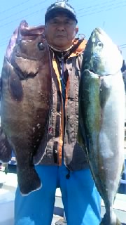 外房大原港~ 五目&一つテンヤのシャクリマダイに出船しました (^^)v 始めは五目釣りです (☆。☆) ポイントは太東沖 ε=┏( ・_・)┛ 水深は35m~40mを狙いました (≧▼≦) マトウダイの攻撃に遭いましたが Σ( ̄□ ̄;) イナダ・ワラサをゲット (^^)v 早々に一つテンヤに切り替え太東沖へ ε=┏( ・_・)┛ 水深は35m前後を狙いました (☆。☆) 大きさ0.5kg~1.5kgの中型マダイを (^.^)b 1枚~6枚 (≧▼≦) 外道で イナダ多数 キントキ ハナダイ ウマズラ と多彩でしたね (^.^)b まあまあの釣行だったと思います (^^)v 出船予定です ………↓……… 明日・4月18日の水曜日は マハタに出船いたします (^^)v 今のところ4名のお客さんから予約を頂いております m(__)m 4月19日の木曜日は ヤリイカに出船いたします (^^)v 今のところ3名のお客さんから予約を頂いております m(__)m 4月21日の土曜日は ヒラメ&ハタに出船いたします (^^)v 今のところ2名のお客さんから予約を頂いております m(__)m 4月22日の日曜日は ヒラメ&一つテンヤのシャクリマダイに出船いたします (☆。☆) 今のところ3名のお客さんから予約を頂いております m(__)m 4月28日の土曜日は ハタ&オニカサゴに出船いたします (^^)v おかげさまで満船となりました~ \(^O^)/ ありがとうございます m(__)m 4月29日の日曜日はヤリイカに出船いたします (^^)v 今のところ7名のお客さんから予約を頂いております m(__)m 4月30日の月曜日は Lightタックル・イサキに出船いたします (^^)v おかげさまで満船となりました~ \(^O^)/ ありがとうございます m(__)m その他の日はまだ予約が入っておりませんので (;^_^A 出船予定日を含め、乗船のお問い合わせを、お待ちしております m(__)m 大原港の遊魚船の休日は第一・第三の月曜日です お知らせです ……↓…… 5月20日の日曜日に 【第7回 探見丸 いすみ市大原港船釣り大会】が開催されます (≧▼≦) 昨年は、震災の為、中止となりました (T_T) 勇盛丸では・FLサイズ・40号を使用 貸し出し無料! ライトタックル、竿・リール 貸し出し無料! お問い合わせをお待ちしております m(__)m 今後の釣り物予定です ………↓……… メインで、 今後、楽しみで、船長が特に力を入れている 一つテンヤのシャクリマダイ ヒラメ オニカサゴ マハタ ヤリイカ ヤリイカ&イカ生き餌の泳がせ釣り ヤリイカ&オニカサゴ にも 出船いたします。 ご予約お待ちしております m(__)m 尚、ヒラメの乗り合いは1名から出船し 12名までとさせていただいておりますので、ご了承ください m(__)m また、マハタの仕掛けは 電話にてご確認をお願いいたします m(__)m 4月1日からはイサキが解禁となりました (☆。☆) 【Lightタックルイサキ用】 サニービシ竿リールを無料貸し出しいたします (^^)v 片手でシャクれて、当たりもダイレクト w(°O°)w 是非、トライしてみて下さい (^.^)b お客さんへのお願いです m(__)m ………↓……… 勇盛丸では、常にお客さんの安全を考えて操業しております 【安全1番・楽しさ2番・最後に釣果はついてくる♪♪♪】《文明堂カステラのCMのパクリですが…(;^_^A》 をテーマに 命を預かる商売ですので、いつも慎重かつ冷静な操船を心がけております。 その為には、お客さんのご協力が必要不可欠ですので…… 生意気な言い方かもしれませんが 海の上では、マナーと船長の指示を必ず守って下さるよう、お願いいたします m(__)m