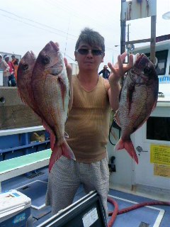 外房大原港~ lightタックル・イサキ&一つテンヤマダイに出船しました (^^)v 始めはイサキです p(^^)q ポイントは 大原沖 ε=ε=(ノ≧∇≦)ノ 朝からダブルトリプルと好調で d=(^o^)=b 大型イサキも釣れて(*^▽^)/★*☆♪ 8時までに 25匹~定量50匹 \(^.^)/ その中に 大きさ1.0kgのシマアジもきました (^-^) 次は一つテンヤのシャクリマダイです d=(^o^)=b ポイントは大原沖 ε=ε=(ノ≧∇≦)ノ 大きさ0.4kg その他 ショウサイフグ ウマズラ でした (^^ゞ イサキは好調キープですね 出船予定です ……↓…… 7月6日の土曜日は オニカサゴに出船いたします (^^)v 今のところ4名のお客さんから予約を頂いております m(._.)m 7月13日の土曜日は イサキ&五目に出船いたします d=(^o^)=b 今のところ5名のお客さんから予約を頂いております m(._.)m 7月14日の日曜日は 一つテンヤのシャクリマダイに出船いたします 今のところ5名のお客さんから予約を頂いております m(._.)m 7月21日の日曜日は イサキ&一つテンヤマダイに出船いたします d=(^o^)=b その他の日は、まだ予約が入っておりませんので (´д`|||) 出船日も含め、乗船のお問い合わせを、お待ちしております m(__)m 問い合わせは 090 2932 3575 0470 62 2086 までお願いします m(._.)m 大原港の優漁船の休日は、第一・第三の月曜日です ゜゜゜゜゜-y(^。^)。o0○ お知らせです ……↓…… 7月7日 日曜日 第4回 テンヤマダイ釣り大会(上州屋&ハヤブサcup)開催 集合 受付時間 AM3:00 開会式 AM3:30 出船 AM4:00 競技終了 AM10:00 表彰式・抽選会 AM11:30 終了・解散 PM12:30 参加資格 10歳以上 参加費 1人 ¥12000 競技 マダイ一匹の総重量 他 外道賞 レディース賞 ジュニア賞 勇盛丸では定員12名の中 m(._.)m おかげさまで満船となりました~ \(^.^)/ ありがとうございます m(._.)m お客さんへのお願いです ……↓…… 勇盛丸では、常にお客さんの安全を考えて操業しております 【安全1番・楽しさ2番・最後に釣果はついてくる♪♪♪】《文明堂カステラcmのパクりですが………(^-^ゞ》 をテーマに 命を預かる商売ですので、いつも慎重かつ冷静な操船を心掛けております その為には、お客さんのご協力が不可欠ですので 生意気な言い方かもしれませんが 海の上では、マナーと船長の指示を必ず守ってくださるよう、お願いいたします m(._.)m
