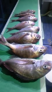 外房大原港~10時出船でのヒラメ&一つテンヤマダイに出船しました(^^)v 始めはヒラメですp(^^)q 一時間半で一枚と苦戦(>_<)その後一つテンヤマダイへε=ε=(ノ≧∇≦)ノポイントは岩船沖 ε=ε=┏(・_・)┛水深は17m~30mを狙いました( ☆∀☆) 大きさ1.5kg~1.7kgの中型マダイを3枚ゲット\(^.^)/その他も1.0kg前後のマダイも釣れて(^^)v楽しめました(^^)dヒラメの釣果も欲しかったですね(^^ゞ お知らせです……↓…… 10月1日からヒラメシーズンが開幕しました\(^.^)/ 集合時間 4時30分 支度でき次第、出船5時30分 仕掛け投入11時30分 沖上がりとなりますまた マハタ専門や リレー釣りでヒラメ、マハタ、一つテンヤマダイ、オニカサゴ の中から組み合わせ自由(^^)v是非、お問合せをお待ちしておりますm(._.)mイベントのお知らせです………↓………11月4日月曜日の振替休日に≪ いすみ市主催 沖釣りフェスタ≫を開催いたしますp(^^)q 大会ではないのですが、各船ごとに1~3位まで賞品を用意しております(^^)dまた、抽選で「いすみ市特産品」が当たります\(^.^)/参加賞は、何と、いすみ市内で使用できる賞品券(3000円分)です。この商品券は、次回の乗船の時に使えますよ(^^)d 参加資格は中学生以上 ↑勇盛丸はヒラメで参加いたしますp(^^)q定員は14名 m(._.)m今のところ9名のエントリーを受付ましたm(._.)m釣り時間 6:00~11:30 受付時間 4:30~5:00(各船宿)お問合せをお待ちしておりますm(._.)m 第2回開催日は2014年1月19日の日曜日ですm(._.)m出船予定です……↓……明日・10月30日の水曜日はショウサイフグ&ヒラメに出船いたします(^^)v今のところ3名のお客さんから予約を頂いておりますm(._.)m10月31日の木曜日はヒラメに出船いたしますp(^^)q今のところ3名のお客さんから予約を頂いておりますm(._.)mその他の日は、まだ予約が入っておりませんので(´д`|||)出船日も含め、乗船のお問い合わせを、お待ちしておりますm(__)m問い合わせは090 2932 35750470 62 2086までお願いしますm(._.)m大原港の優漁船の休日は、第一・第三の月曜日です゜゜゜゜゜-y(^。^)。o0○お客さんへのお願いです……↓……勇盛丸では、常にお客さんの安全を考えて操業しております【安全1番・楽しさ2番・最後に釣果はついてくる♪♪♪】《文明堂カステラcmのパクりですが………(^-^ゞ》をテーマに命を預かる商売ですので、いつも慎重かつ冷静な操船を心掛けておりますその為には、お客さんのご協力が不可欠ですので生意気な言い方かもしれませんが海の上では、マナーと船長の指示を必ず守ってくださるよう、お願いいたしますm(._.)m