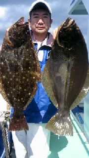 外房大原港~ ヒラメに出船しました d=(^o^)=b 昨日は最低の釣果だったので (>_<) 気持ち入れ変えて挑みました p(^^)q ポイントは大原沖 ε=ε=(ノ≧∇≦)ノ 水深は30m~40mを狙いました (^^)v 朝1の流しで ~>゜)ーーー お客さん全員がヒラメをゲット \(^.^)/ その後も数が伸びて (^^)d 大きさ0.5kg~1.8kgのヒラメを 3枚~8枚(1.2kg~1.3kg主体) \(^.^)/ 船中35枚釣り上げてくれて d=(^o^)=b 外道で ガンゾウ 小ハタ も釣れました (≧∇≦) いい釣行となりましたね d=(^o^)=b 午後から一つテンヤマダイに出船予定でしたが 中止になりました m(._.)m お知らせです ……↓…… 10月1日からヒラメシーズンが開幕しました \(^.^)/ 集合時間 4時30分 支度でき次第、出船 5時30分 仕掛け投入 11時30分 沖上がりとなります また マハタ専門や リレー釣りで ヒラメ、マハタ、一つテンヤマダイ、オニカサゴ の中から組み合わせ自由 (^^)v 是非、お問合せをお待ちしております m(._.)m イベントのお知らせです ………↓……… 11月4日月曜日の振替休日に ≪ いすみ市主催 沖釣りフェスタ≫を開催いたします p(^^)q 大会ではないのですが、各船ごとに1~3位まで賞品を用意しております (^^)d また、抽選で「いすみ市特産品」が当たります \(^.^)/ 参加賞は、何と、いすみ市内で使用できる賞品券(3000円分)です。 この商品券は、次回の乗船の時に使えますよ (^^)d 参加資格は中学生以上 ↑ 勇盛丸はヒラメで参加いたします p(^^)q 定員は14名 m(._.)m 今のところ4名のエントリーを受付ました m(._.)m 釣り時間 6:00~11:30 受付時間 4:30~5:00(各船宿) お問合せをお待ちしております m(._.)m 第2回開催日は 2014年1月19日の日曜日です m(._.)m 出船予定です ……↓…… 明日・10月13日の日曜日は マハタ&オニカサゴに出船いたします (^^)v 今のところ9名のお客さんから予約を頂いております(あと1名で満船とさせて頂きます) m(._.)m 10月14日の体育の日は ヒラメに出船いたします (^^)v 今のところ3名のお客さんから予約を頂いております m(._.)m 10月19日の土曜日は ヒラメ&一つテンヤマダイに出船いたします p(^^)q おかげさまで満船となりました~ \(^.^)/ ありがとうございます m(._.)m 10月20日の日曜日も ヒラメに出船いたします p(^^)q おかげさまで満船となりました~ \(^.^)/ ありがとうございます m(._.)m 10月25日の金曜日 も ヒラメに出船いたします d=(^o^)=b 今のところ2名のお客さんから予約を頂いております m(._.)m その他の日は、まだ予約が入っておりませんので (´д`|||) 出船日も含め、乗船のお問い合わせを、お待ちしております m(__)m 問い合わせは 090 2932 3575 0470 62 2086 までお願いします m(._.)m 大原港の優漁船の休日は、第一・第三の月曜日です ゜゜゜゜゜-y(^。^)。o0○ お客さんへのお願いです ……↓…… 勇盛丸では、常にお客さんの安全を考えて操業しております 【安全1番・楽しさ2番・最後に釣果はついてくる♪♪♪】《文明堂カステラcmのパクりですが………(^-^ゞ》 をテーマに 命を預かる商売ですので、いつも慎重かつ冷静な操船を心掛けております その為には、お客さんのご協力が不可欠ですので 生意気な言い方かもしれませんが 海の上では、マナーと船長の指示を必ず守ってくださるよう、お願いいたします m(._.)m