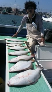 外房大原港~ ヒラメに出船しました (^^)v 北風強く (((((((・・;) 5時半に出船して港を出ると ε=ε=┏(・_・)┛ うねりは小さく風波でした (^^)d ポイントは太東灯台沖 ε=ε=(ノ≧∇≦)ノ 水深18mを狙いました p(^^)q 当たりが少なくて……………… (>_<) 時間までに 大きさ0.6kg~1.5kgのヒラメを 0枚~2枚 (^_^;) 外道で 3.0kgのヒラマサ イナダ も釣れました (^^ゞ お客さん全員にヒラメを釣らせることが出来ず (^_^;) 悔やまれます (>_<) お知らせです ……↓…… 10月1日からヒラメシーズンが開幕しました \(^.^)/ 集合時間 4時30分 支度でき次第、出船 5時30分 仕掛け投入 11時30分 沖上がりとなります また マハタ専門や リレー釣りで ヒラメ、マハタ、一つテンヤマダイ、オニカサゴ の中から組み合わせ自由 (^^)v 是非、お問合せをお待ちしております m(._.)m イベントのお知らせです ………↓……… 11月4日月曜日の振替休日に ≪ いすみ市主催 沖釣りフェスタ≫を開催いたします p(^^)q 大会ではないのですが、各船ごとに1~3位まで賞品を用意しております (^^)d また、抽選で「いすみ市特産品」が当たります \(^.^)/ 参加賞は、何と、いすみ市内で使用できる賞品券(3000円分)です。 この商品券は、次回の乗船の時に使えますよ (^^)d 参加資格は中学生以上 ↑ 勇盛丸はヒラメで参加いたします p(^^)q 定員は14名 m(._.)m 釣り時間 6:00~11:30 受付時間 4:30~5:00(各船宿) お問合せをお待ちしております m(._.)m 第2回開催日は 2014年1月19日の日曜日です m(._.)m 出船予定です ……↓…… 10月6日の日曜日も ヒラメに出船いたします (^^)v おかげさまで満船となりました~ \(^.^)/ ありがとうございます m(._.)m 10月9日の水曜日も ヒラメに出船いたします p(^^)q 今のところ3名のお客さんから予約を頂いております m(._.)m 10月19日の土曜日は ヒラメ&一つテンヤマダイに出船いたします p(^^)q おかげさまで満船となりました~ \(^.^)/ ありがとうございます m(._.)m 10月20日の日曜日も ヒラメに出船いたします p(^^)q おかげさまで満船となりました~ \(^.^)/ ありがとうございます m(._.)m その他の日は、まだ予約が入っておりませんので (´д`|||) 出船日も含め、乗船のお問い合わせを、お待ちしております m(__)m 問い合わせは 090 2932 3575 0470 62 2086 までお願いします m(._.)m 大原港の優漁船の休日は、第一・第三の月曜日です ゜゜゜゜゜-y(^。^)。o0○ お客さんへのお願いです ……↓…… 勇盛丸では、常にお客さんの安全を考えて操業しております 【安全1番・楽しさ2番・最後に釣果はついてくる♪♪♪】《文明堂カステラcmのパクりですが………(^-^ゞ》 をテーマに 命を預かる商売ですので、いつも慎重かつ冷静な操船を心掛けております その為には、お客さんのご協力が不可欠ですので 生意気な言い方かもしれませんが 海の上では、マナーと船長の指示を必ず守ってくださるよう、お願いいたします m(._.)m