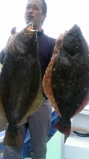 外房大原港~ ヒラメに出船しました (^^)d お客さんの希望で大型狙い p(^^)q ポイントは岩船沖 ε=ε=(ノ≧∇≦)ノ 水深は50m~60mを狙いました (^^)v 来ました~ \(^.^)/ 今シーズン初の大型ヒラメ \(^.^)/ 4.0kg・3.5kg・3.0kg \(^.^)/ その他、大きさ1.5kg~2.0kgサイズのヒラメもゲットしてくれて d=(^o^)=b 外道で 大きさ3.0kgのマハタ ワラサ サンパク も釣れました (^^)d お客さんの希望で10時50分に沖上がり ε=ε=┏(・_・)┛ 潮の流れが次第に速くなりましたが 今後、落ち着けば大型ヒラメ期待です p(^^)q また、ヒラメとマハタの同時狙いも楽しみですね (^-^)/ お知らせです ……↓…… 10月1日からヒラメシーズンが開幕しました \(^.^)/ 集合時間 4時30分 支度でき次第、出船 5時30分 仕掛け投入 11時30分 沖上がりとなります また マハタ専門や リレー釣りで ヒラメ、マハタ、一つテンヤマダイ、オニカサゴ の中から組み合わせ自由 (^^)v 是非、お問合せをお待ちしております m(._.)m イベントのお知らせです ………↓……… 11月4日月曜日の振替休日に ≪ いすみ市主催 沖釣りフェスタ≫を開催いたします p(^^)q 大会ではないのですが、各船ごとに1~3位まで賞品を用意しております (^^)d また、抽選で「いすみ市特産品」が当たります \(^.^)/ 参加賞は、何と、いすみ市内で使用できる賞品券(3000円分)です。 この商品券は、次回の乗船の時に使えますよ (^^)d 参加資格は中学生以上 ↑ 勇盛丸はヒラメで参加いたします p(^^)q 定員は14名 m(._.)m 釣り時間 6:00~11:30 受付時間 4:30~5:00(各船宿) お問合せをお待ちしております m(._.)m 第2回開催日は 2014年1月19日の日曜日です m(._.)m 出船予定です ……↓…… 10月8日の火曜日も ヒラメに出船いたします d=(^o^)=b 今のところ3名のお客さんから予約を頂いております m(._.)m 10月9日の水曜日も ヒラメに出船いたします p(^^)q 今のところ3名のお客さんから予約を頂いております m(._.)m 10月19日の土曜日は ヒラメ&一つテンヤマダイに出船いたします p(^^)q おかげさまで満船となりました~ \(^.^)/ ありがとうございます m(._.)m 10月20日の日曜日も ヒラメに出船いたします p(^^)q おかげさまで満船となりました~ \(^.^)/ ありがとうございます m(._.)m 10月25日の金曜日 も ヒラメに出船いたします d=(^o^)=b 今のところ2名のお客さんから予約を頂いております m(._.)m その他の日は、まだ予約が入っておりませんので (´д`|||) 出船日も含め、乗船のお問い合わせを、お待ちしております m(__)m 問い合わせは 090 2932 3575 0470 62 2086 までお願いします m(._.)m 大原港の優漁船の休日は、第一・第三の月曜日です ゜゜゜゜゜-y(^。^)。o0○ お客さんへのお願いです ……↓…… 勇盛丸では、常にお客さんの安全を考えて操業しております 【安全1番・楽しさ2番・最後に釣果はついてくる♪♪♪】《文明堂カステラcmのパクりですが………(^-^ゞ》 をテーマに 命を預かる商売ですので、いつも慎重かつ冷静な操船を心掛けております その為には、お客さんのご協力が不可欠ですので 生意気な言い方かもしれませんが 海の上では、マナーと船長の指示を必ず守ってくださるよう、お願いいたします m(._.)m