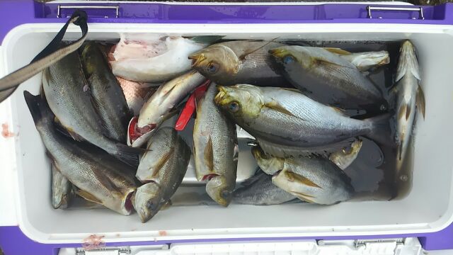 外房大原港~Lightタックル・イサキに出船しました(^^)vポイントは岩船沖ε=ε=(ノ≧∇≦)ノ水深は20m前後を狙いましたp(^^)q 朝一の流しはポツポツと釣れてd=(^o^)=b次の場所でダブル・トリプル\(^^)/型も大型交じりでしたその他ハナダイ 黒メバルも釣れて(^^)v時間までにイサキ35匹~定量50匹\(^^)/型も良いのでクーラー満杯でしたo(^o^)o出船予定です……↓……明日・5月24日の日曜日は午前中、Lightタックル・イサキ&一つテンヤマダイに出船いたします(^^)v今のところ6名のお客さんから予約を頂いておりますm(._.)mこの日の午後からは一つテンヤマダイに出船いたしますd=(^o^)=b今のところ8名のお客さんから予約を頂いておりますm(._.)m5月27日の水曜日はLightタックル・イサキに出船いたします(^^)v今のところ2名のお客さんから予約を頂いておりますm(._.)m 5月30日の土曜日はオニカサゴに出船いたします(^^)v今のところ3名のお客さんから予約を頂いておりますm(._.)mその他の日はまだ予約が入っておりませんので(;^_^A出船日も含めてお問い合わせをお待ちしておりますm(._.)mお知らせです………↓………4月1日から仕掛け投入時間は5時となりましたp(^^)qその為沖上がり11時までです(^o^)/~~5月の釣り物 イサキ、鬼カサゴ、一つテンヤマダイをメインで出船いたしますd=(^o^)=bその他2種目リレー釣りへも企画致しますm(._.)m勇盛丸は、ジギング専門ではないのですが(;^_^Aジギングも乗り合いで楽しんでもらえたら、嬉しいですね(^^)bお知らせパート2第六回 テンヤマダイ釣り大会開催7月5日 日曜日集合時間 3:00勇盛丸では、定員を14名とさせていただきますm(._.)m 参加費 12500円タイムスケジュール 3:00 受付3:30 開会式 4:00 出船 10:00 競技終了11:30 表彰式12:30 終了審査 釣り上げたマダイ1尾の重量 5月11日より受付開始しました\(^^)/今のところ10名のお客さんからエントリーを受付しましたm(._.)mその他、お問い合わせは090 2932 35750470 62 2086までお願いいたしますm(._.)m大原港の優漁船の休日は、第一・第三の月曜日です(^_^)y-゜゜゜゜゜お客さんへのお願いです……↓……勇盛丸では、常にお客さんの安全を考えて操業しております【安全1番・楽しさ2番・最後に釣果はついてくる♪♪♪】《文明堂カステラcmのパクりですが………(^-^ゞ》をテーマに命を預かる商売ですので、いつも慎重かつ冷静な操船を心掛けておりますその為には、お客さんのご協力が不可欠ですので生意気な言い方かもしれませんが海の上では、マナーと船長の指示を必ず守ってくださるよう、お願いいたしますm(._.)m