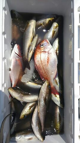 外房大原港~lightタックル・イサキに出船しましたd=(^o^)=bポイントは岩船沖ε=ε=(ノ≧∇≦)ノ水深は20m前後を狙いました( ☆∀☆) 朝からダブル・トリプルとよく釣れましたがサイズが小さい(・・;)なので場所移動ε=ε=(ノ≧∇≦)ノ何処の場所も型はあるのですがサイズが小さく(((・・;)最後のポイントはジャンボイサキがポツポツ(^^)vたまにダブルありでd=(^o^)=bハナダイ マダイも釣れました(^^)d初イサキ大成功ですね\(^^)/出船予定です……↓……5月10日の日曜日はイサキに出船いたします(^^)v乗船のお客さん募集中ですm(._.)m その他の日は、まだ予約が入っておりませんので(;^_^A出船日を含めて、お問い合わせをお待ちしておりますm(._.)mお知らせです………↓………4月1日から仕掛け投入時間は5時となりましたp(^^)qその為沖上がり11時までです(^o^)/~~4月の釣り物 マハタ・ヒラメ同時狙いをメインで出船いたしますd=(^o^)=bその他ヒラメ マハタ 一つテンヤマダイ オニカサゴヤリイカから2種目リレー釣りへも企画致しますm(._.)m勇盛丸は、ジギング専門ではないのですが(;^_^Aジギングも乗り合いで楽しんでもらえたら、嬉しいですね(^^)bお知らせパート25月17日の日曜日 イサキ釣り大会開催\(^^)/ 詳細は後日(^^ゞ勇盛丸では定員14名でエントリーを受付させて頂きますd=(^o^)=bおかげさまで満船となりました~\(^^)/ありがとうございますm(._.)mその他、お問い合わせは090 2932 35750470 62 2086までお願いいたしますm(._.)m大原港の優漁船の休日は、第一・第三の月曜日です(^_^)y-゜゜゜゜゜お客さんへのお願いです……↓……勇盛丸では、常にお客さんの安全を考えて操業しております【安全1番・楽しさ2番・最後に釣果はついてくる♪♪♪】《文明堂カステラcmのパクりですが………(^-^ゞ》をテーマに命を預かる商売ですので、いつも慎重かつ冷静な操船を心掛けておりますその為には、お客さんのご協力が不可欠ですので生意気な言い方かもしれませんが海の上では、マナーと船長の指示を必ず守ってくださるよう、お願いいたしますm(._.)m