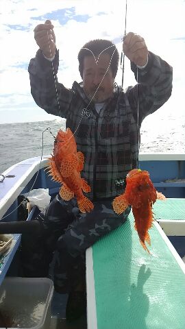 外房大原港~オニカサゴに出船しました(^^)v ポイントは岩船沖ε=ε=(ノ≧∇≦)ノ水深は100m~120mを狙いました( ☆∀☆) 多少のウネリがあり(・・;)朝の内は、3.0kgのカンコのみだったので120mのポイントに移動ε=ε=(ノ≧∇≦)ノポツポツと当たるなか、良型の鬼カサゴをダブルでゲット\(^^)/ 終盤サメに邪魔されましたが(`へ´*)ノお土産十分d=(^o^)=b釣果は大きさ0.6kg~1.5kgのオニカサゴを1匹~5匹(^^)v全員、鬼退治成功です\(^^)/出船予定です……↓……明日・7月21日の月曜日は一つテンヤマダイに出船いたします(^^)v乗船のお客さんを募集中ですm(._.)m7月22日の水曜日はスルメイカに出船いたします(^^)v今のところ2名のお客さんから予約を頂いておりますm(._.)m7月24日の金曜日はLightタックル・イサキに出船いたします(^^)v今のところ2名のお客さんから予約を頂いておりますm(._.)m 7月26日の日曜日は一つテンヤマダイに出船いたしますd=(^o^)=b今のところ4名のお客さんから予約を頂いておりますm(._.)mその他の日はまだ予約が入っておりませんので(・・;)出船日も含めて問い合わせをお待ちしておりますm(._.)m緊急告知です……↓……夏休み企画 アジ釣り体験 期間7月19日~8月30日 料金 大人(高校生以上)一人4000円 子供(小学生以下)一人2000円 貸竿 仕掛けあり 体験所要時間、3時間程度 人数5名から出船 定員数16名 申し込み方法 勇盛丸(ゆうせいまる)TEL0470 62 2086 この夏休み思い出に! 親子 恋人夫婦 お友達 その他 お待ちしておりますd=(^o^)=b大会案内です……↓……勇盛丸は第八回いすみ市大原港一つテンヤ真鯛釣大会に参加しますp(^^)q開催日 9月6日 日曜日 午前3:30受付開始 荒天の場合 9月20日 日曜日参加費 1名 当り、 税込\12000(船代 弁当代 付け餌2パック 氷 保険料)を含む検量方法 真鯛一匹の重量 勇盛丸では定員を12名とさせていただきますm(._.)m受付開始してます(^^)v今のところ7名のお客さんからエントリーを頂きましたm(._.)m残り5名ですd=(^o^)=bエントリーは0470 62 2086までお願いしますm(._.)mお知らせです………↓………探見丸 スマホ対応アンテナ搭載しましたシマノ探見丸 スマートフォンで見る事が出来ます無料アプリ配信中です(^^)v仕掛け投入時間は5時となっておりますp(^^)qその為沖上がり11時までです(^o^)/~~7月の釣り物 イサキ、鬼カサゴ、一つテンヤマダイをメインで出船いたしますd=(^o^)=bその他2種目リレー釣りへも企画致しますm(._.)m勇盛丸は、ジギング専門ではないのですが(;^_^Aジギングも乗り合いで楽しんでもらえたら、嬉しいですね(^^)bその他、お問い合わせは090 2932 35750470 62 2086までお願いいたしますm(._.)m大原港の優漁船の休日は、第一・第三の月曜日です(^_^)y-゜゜゜゜゜お客さんへのお願いです……↓……勇盛丸では、常にお客さんの安全を考えて操業しております【安全1番・楽しさ2番・最後に釣果はついてくる♪♪♪】《文明堂カステラcmのパクりですが………(^-^ゞ》をテーマに命を預かる商売ですので、いつも慎重かつ冷静な操船を心掛けておりますその為には、お客さんのご協力が不可欠ですので生意気な言い方かもしれませんが海の上では、マナーと船長の指示を必ず守ってくださるよう、お願いいたしますm(._.)m