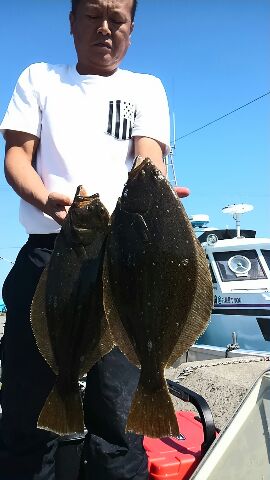 外房大原港~ヒラメに出船しました(^^)vポイントは太東沖ε=ε=(ノ≧∇≦)ノ水深は40m前後を狙いました( ☆∀☆)朝の内は、周りの船がバタバタと釣れているのを見てるだけ (・・;)4流し目からヒラメの当たりが出はじめて(^^)vその後は順調に釣れ(^^)d大きさもヒラメサイズ主体で、2.0kg級も交じりd=(^o^)=b 最大2.8kg\(^^)/他2.6kg・2.5kg・2.4kg(^^)v 時間までに当たりがあり絶好調でした( ☆∀☆)釣果は大きさ0.6kg(1kg以下少枚)~2.8kgのヒラメを1枚~8枚×2名 三番手7枚 船中39枚釣り上げてくれました~\(^^)/感謝・感謝ですm(._.)m出船予定です……↓……明日・10月15日の木曜日はマハタ&ヒラメに出船いたします(^^)v今のところ5名のお客さんから予約を頂いておりますm(._.)m 10月16日の金曜日はヒラメ&一つテンヤマダイに出船いたしますd=(^o^)=b今のところ1名のお客さんから予約を頂いておりますm(._.)m 10月17日の土曜日はヒラメに出船いたします(^^)v今のところ5名のお客さんから予約を頂いておりますm(._.)m10月18日の日曜日はマハタ・ヒラメ&一つテンヤマダイに出船いたします(^^)vおかげさまで満船となりました~\(^^)/ありがとうございますm(._.)mその他の日は、まだ予約が入っておりませんので(・・;)出船日を含めて問い合わせをお待ちしておりますm(._.)mお知らせです………↓………探見丸 スマホ対応アンテナ搭載しましたシマノ探見丸 スマートフォンで見る事が出来ます無料アプリ配信中です(^^)v10月より イワシ泳がせ解禁となりました\(^^)/勇盛丸では、マハタ&ヒラメをメインに出船p(^^)qまた希望によりヒラメ専門 マハタ&ヒラメヒラメ&オニカサゴのリレー釣りマハタ・ヒラメ&一つテンヤマダイのリレー釣りなどの企画もいたします(^^)v勇盛丸は、ジギング専門ではないのですが(;^_^Aジギングも乗り合いで楽しんでもらえたら、嬉しいですね(^^)bその他、お問い合わせは090 2932 35750470 62 2086までお願いいたしますm(._.)mイベントのお知らせです……↓……11月1日の日曜日と11月3日の文化の日 沖釣りフェスタ開催p(^^)q勇盛丸はヒラメで出船いたしますd=(^o^)=b定員は14名現在募集中です(^^ゞエントリーお待ちしておりますp(^^)qエントリー状況11月1日・7名(残り7名)11月3日・0名(残り14名)大原港の優漁船の休日は、第一・第三の月曜日です(^_^)y-゜゜゜゜゜お客さんへのお願いです……↓……勇盛丸では、常にお客さんの安全を考えて操業しております【安全1番・楽しさ2番・最後に釣果はついてくる♪♪♪】《文明堂カステラcmのパクりですが………(^-^ゞ》をテーマに命を預かる商売ですので、いつも慎重かつ冷静な操船を心掛けておりますその為には、お客さんのご協力が不可欠ですので生意気な言い方かもしれませんが海の上では、マナーと船長の指示を必ず守ってくださるよう、お願いいたしますm(._.)m