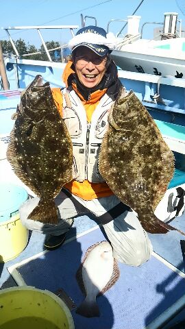 外房大原港~ヒラメ&鰯追いかけマダイに出船しました(^^)v始めはヒラメですp(^-^)q鰯反応が有って\(^-^)/早々にみなさんヒラメゲットd=(^o^)=bその後、ヒラメとマダイの同時狙いに( ☆∀☆)マダイらしき当たりが有りましたがw(゜o゜)wハリスが切れて(/_;)/~~残念(>_<)その後 小タイ ウマズラ ヒラメとポツポツ釣れて(^^)b時間までに大きさ1.2kg~2.4kgのヒラメを1枚~4枚(^^)vダブルゲットとはいきませんでしたが(^^ゞ楽しんでもらえたと思いますo(^o^)o出船予定です……↓……明日・1月27日の水曜日はヒラメに出船いたします(^^)v今のところ4名のお客さんから予約を頂いておりますm(._.)m1月28日の木曜日はヒラメに出船いたしますd=(^o^)=b今のところ2名のお客さんから予約を頂いておりますm(._.)m1月31日の日曜日は鬼カサゴに出船予定です(^^)v今のところ1名のお客さんから予約を頂いております(3名からの出船とさせて頂いております)m(._.)m2月3日の水曜日はおかげさまで満船となりました~\(^-^)/ありがとうございます2月5日の金曜日はヒラメ&マハタに出船いたします(^^)v今のところ1名のお客さんから予約を頂いておりますm(._.)mその他の日は予約が入っておりませんので(^^ゞ出船日を含めて、お問い合わせをお待ちしております_(._.)_イベントのお知らせです………↓………第五回いすみ市大原港ヒラメ釣り大会開催\(^-^)/開催日時3月6日・日曜日 (※荒天の場合3月20日に順延)勇盛丸では定員14名で募集をさせて頂きますm(._.)m参加費用税込み12500円(船代・餌付き・弁当代・氷・保険料を含む) スケジュール ↓AM4:30 受付開始 5:30 出船 6:00 開始 11:00 沖上がり 11:30~検量 昼食 ジャンケン大会・表彰式・閉会式検量方法 ↓ヒラメ1匹の総重量 レディース賞・女性の中での総重量今のところ8名のお客さんからエントリーを受付ました(残り6名)m(._.)mお問い合わせをお待ちしておりますm(._.)mお知らせです………↓………探見丸 スマホ対応アンテナ搭載しましたシマノ探見丸 スマートフォンで見る事が出来ます無料アプリ配信中です(^^)v10月より イワシ泳がせ解禁となりました\(^^)/勇盛丸では、マハタ&ヒラメをメインに出船p(^^)qまた希望によりヒラメ専門 マハタ&ヒラメヒラメ&オニカサゴのリレー釣りマハタ・ヒラメ&一つテンヤマダイのリレー釣りなどの企画もいたします(^^)v勇盛丸は、ジギング専門ではないのですが(;^_^Aジギングも乗り合いで楽しんでもらえたら、嬉しいですね(^^)bその他、お問い合わせは090 2932 35750470 62 2086までお願いいたしますm(._.)m大原港の優漁船の休日は、第一・第三の月曜日です(^_^)y-゜゜゜゜゜お客さんへのお願いです……↓……勇盛丸では、常にお客さんの安全を考えて操業しております【安全1番・楽しさ2番・最後に釣果はついてくる♪♪♪】《文明堂カステラcmのパクりですが………(^-^ゞ》をテーマに命を預かる商売ですので、いつも慎重かつ冷静な操船を心掛けておりますその為には、お客さんのご協力が不可欠ですので生意気な言い方かもしれませんが海の上では、マナーと船長の指示を必ず守ってくださるよう、お願いいたしますm(._.)m