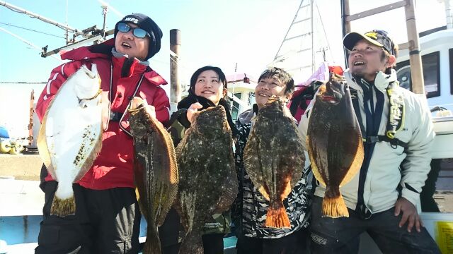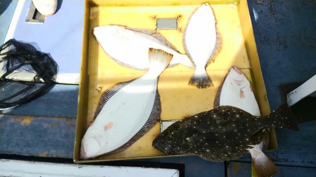 外房大原港~ヒラメに出船しました(^^)vポイントは大原港南側 ε=ε=(ノ≧∇≦)ノ水深は15m前後を狙いました( ☆∀☆)朝の内から当たり良くd=(^o^)=bソゲサイズ~2.0kgが釣れました(^^)vバラシも多数ありましたが(((・・;)早々にお客さん全員がヒラメゲットしてくれました\(^-^)/明るくなってからは、当たりが無くなり(^^ゞ根周りを狙いポツポツと狙って( ☆∀☆)時間までに大きさ0.5kg~2.0kgのヒラメを3枚~4枚d=(^o^)=bいい釣行となりましたね(^^)v出船予定です……↓……1月10日の日曜日はマハタに出船いたします(^^)v今のところ2名のお客さんから予約を頂いておりますm(._.)m1月11日の月曜日は一つテンヤマダイに出船いたします(^^)v 今のところ6名のお客さんから予約を頂いておりますm(._.)m1月16日の土曜日はヒラメ&マハタに出船いたします(^^)v今のところ3名のお客さんから予約を頂いておりますm(._.)mその他の日は予約が入っておりませんので(^^ゞ出船日を含めて、お問い合わせをお待ちしております_(._.)_イベントのお知らせです……↓……1月17日沖釣りイベント開催\(^-^)/参加者募集しておりますm(._.)m勇盛丸では定員14名で、ヒラメに出船いたします好調のヒラメをガンガン釣ってもらいたいですねd=(^o^)=bお知らせです………↓………探見丸 スマホ対応アンテナ搭載しましたシマノ探見丸 スマートフォンで見る事が出来ます無料アプリ配信中です(^^)v10月より イワシ泳がせ解禁となりました\(^^)/勇盛丸では、マハタ&ヒラメをメインに出船p(^^)qまた希望によりヒラメ専門 マハタ&ヒラメヒラメ&オニカサゴのリレー釣りマハタ・ヒラメ&一つテンヤマダイのリレー釣りなどの企画もいたします(^^)v勇盛丸は、ジギング専門ではないのですが(;^_^Aジギングも乗り合いで楽しんでもらえたら、嬉しいですね(^^)bその他、お問い合わせは090 2932 35750470 62 2086までお願いいたしますm(._.)m大原港の優漁船の休日は、第一・第三の月曜日です(^_^)y-゜゜゜゜゜お客さんへのお願いです……↓……勇盛丸では、常にお客さんの安全を考えて操業しております【安全1番・楽しさ2番・最後に釣果はついてくる♪♪♪】《文明堂カステラcmのパクりですが………(^-^ゞ》をテーマに命を預かる商売ですので、いつも慎重かつ冷静な操船を心掛けておりますその為には、お客さんのご協力が不可欠ですので生意気な言い方かもしれませんが海の上では、マナーと船長の指示を必ず守ってくださるよう、お願いいたしますm(._.)m