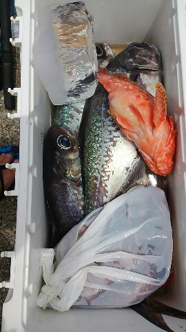外房大原港~中深場五目に出船しました(^^)vポイントは大原沖ε=ε=(ノ≧∇≦)ノ水深は200m前後を狙いました( ☆∀☆)朝の内は穏やかだったのですが(^^)d真っ黒い雲が来たとたん(・・;)雨風(>_<) 7時半までにメダイ多数 黒ムツ 5匹 沖メバル多数 クーラ満たんとなりました時間までやれれば、もっといい釣果が出たと思うので(((・・;)残念です(*_*)出船予定です……↓……8月7日の日曜日は一つテンヤマダイに出船いたします(^^)v 今のところ4名のお客さんから予約を頂いておりますm(._.)m8月11日の木曜日はスルメ&オニカサゴに出船いたしますd=(^o^)=b今のところ6名のお客さんから予約を頂いておりますm(._.)mその他の日は、まだ予約が入っておりませんので(^_^;)出船日も含めて、お問い合わせをお待ちしておりますm(._.)mイベントのお知らせです…………↓…………9月4日の日曜日第9回いすみ市大原港一つテンヤ真鯛釣大会開催\(^-^)/勇盛丸では定員を12名とさせていただきますp(^-^)q今のところ2名のお客さんからエントリーを頂いておりますm(._.)m参加費用 1名 税込12000円 (船代 弁当代 付け餌 2パック付き 氷 保険料)釣方エビ餌を使用したスピニングシャクリ検量方法 選手一人が釣り上げた真鯛1匹の重量スケジュール 3:30 受付開始 4:00 開始式4:30 出船 5:00 スタート 10:00 終了 10:30 検量 昼食 11:00 ジャンケン大会 11:40 表彰式 抽選会11:45 閉会式 お問い合わせをお待ちしておりますm(._.)mお知らせです………↓………探見丸 スマホ対応アンテナ搭載しましたシマノ探見丸 スマートフォンで見る事が出来ます無料アプリ配信中です(^^)v勇盛丸では、ライトタックル・イサキ鬼カサゴメヌケスルメイカ沖物釣り(中深場 五目)電話確認に出船いたしますd=(^o^)=bまた希望によりオニカサゴのリレー釣り一つテンヤマダイのリレー釣りなどの企画もいたします(^^)v勇盛丸は、ジギング専門ではないのですが(;^_^Aジギングも乗り合いで楽しんでもらえたら、嬉しいですね(^^)bその他、お問い合わせは090 2932 35750470 62 2086までお願いいたしますm(._.)m大原港の優漁船の休日は、第一・第三の月曜日です(^_^)y-゜゜゜゜゜お客さんへのお願いです……↓……勇盛丸では、常にお客さんの安全を考えて操業しております【安全1番・楽しさ2番・最後に釣果はついてくる♪♪♪】《文明堂カステラcmのパクりですが………(^-^ゞ》をテーマに命を預かる商売ですので、いつも慎重かつ冷静な操船を心掛けておりますその為には、お客さんのご協力が不可欠ですので生意気な言い方かもしれませんが海の上では、マナーと船長の指示を必ず守ってくださるよう、お願いいたします