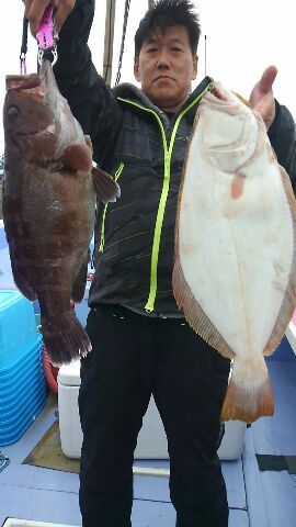 外房大原港~マハタに出船しましたd=(^o^)=bポイントは大原沖ε=ε=(ノ≧∇≦)ノ水深は30m~70mを狙いました(^^)b急激な水温低下で(・・;)苦戦(>_<)小サイズ~1.5kgのマハタを0匹~3匹(^^;)))ヒラメは1.3kg~3.3kgを0~2枚(・・;)その他マトウダイ ワラサも釣れました(^^ゞ明日はエンジンメンテナンスの為 臨時休業いたしますm(._.)m出船予定です………↓………4月22日の土曜日はマハタに出船いたしますd=(^o^)=b今のところ5名のお客さんから予約を頂いておりますm(._.)m4月23日の日曜日は一つテンヤマダイに出船いたします(^^)vおかげさまで満船となりました~\(^-^)/ありがとうございますm(._.)m4月29日の土曜日は一つテンヤマダイに出船いたしますd=(^o^)=b今のところ2名のお客さんから予約を頂いておりますm(._.)m4月30日の日曜日はヒラメに出船いたしますd=(^o^)=b今のところ3名のお客さんから予約を頂いておりますm(._.)m5月1日の月曜日はヒラメに出船いたします(^^)v今のところ1名のお客さんから予約を頂いておりますm(._.)m5月4日の木曜日はヒラメに出船いたします(^^)b今のところ2名のお客さんから予約を頂いておりますm(._.)m5月3日の水曜日はメヌケに出船いたしますd=(^o^)=b今のところ3名のお客さんから予約を頂いておりますm(._.)m5月5日の金曜日はメヌケに出船いたします(^^)vおかげさまで満船となりました~\(^-^)/ありがとうございますm(._.)m 5月7日の日曜日は根魚五目に出船いたします(^^)b5名5月20日の土曜日はメヌケに出船いたしますd=(^o^)=bおかげさまで満船となりました~\(^-^)/ありがとうございますm(._.)mその他の日は、まだ予約が入っておりませんので(^_^;)出船日も含めて、お問い合わせをお待ちしておりますm(._.)mイベントのお知らせです…………↓…………5月21日 日曜日探見丸 イサキ釣り大会開催勇盛丸では定員14名で募集させて頂きますm(._.)m今のところ10名のお客さんから予約を頂いております\(^-^)/お問い合わせをお待ちしております(^^)/お知らせです…………↓…………4月1日から投入時間が5時沖上がり11時になりました集合時間は4時となっております探見丸 スマホ対応アンテナ搭載しましたシマノ探見丸 スマートフォンで見る事が出来ます無料アプリ配信中です(^^)v勇盛丸では、イサキヒラメヒラメ&マハタに出船いたしますd=(^o^)=bまた希望によりオニカサゴのリレー釣り一つテンヤマダイのリレー釣りなどの企画もいたします(^^)v勇盛丸は、ジギング専門ではないのですが(;^_^Aジギングも乗り合いで楽しんでもらえたら、嬉しいですね(^^)bその他、お問い合わせは090 2932 35750470 62 2086までお願いいたしますm(._.)m大原港の優漁船の休日は、第一・第三の月曜日です(^_^)y-゜゜゜゜゜お客さんへのお願いです……↓……勇盛丸では、常にお客さんの安全を考えて操業しております【安全1番・楽しさ2番・最後に釣果はついてくる♪♪♪】《文明堂カステラcmのパクりですが………(^-^ゞ》をテーマに命を預かる商売ですので、いつも慎重かつ冷静な操船を心掛けておりますその為には、お客さんのご協力が不可欠ですので生意気な言い方かもしれませんが海の上では、マナーと船長の指示を必ず守ってくださるよう、お願いいたします