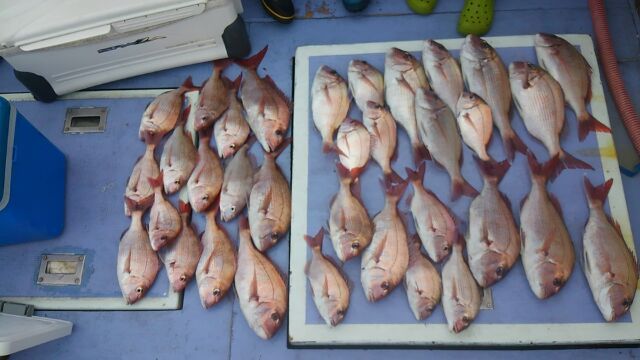 外房大原港~一つテンヤマダイに出船しました(^^)vポイントは太東灯台下ε=ε=(ノ≧∇≦)ノ水深は6m~10mを狙いましたp(^-^)q浅場の数釣り開幕ですd=(^o^)=b朝から当たりよく(^^)v0.2kg~1.3kg1.0kg前後の良型主体\(^-^)/その他にワカシ 多 ショウサイフグ カサゴ ソゲ ハナダイも釣れてd=(^o^)=b時間までにマダイ9枚~14枚船中34枚\(^-^)/と大漁でした(^^)v出船予定です…………↓…………まだ予約が入っておりませんので(^_^;)お問い合わせをお待ちしておりますm(._.)mイベントのお知らせです…………↓…………9月3日 日曜日 マダイ釣り大会開催!4:00 受付開始5:30 スタートフィッシング10:30 ストップフィッシング参加費用 12500円(弁当 エサ 氷 保健)勇盛丸では定員14名で募集をさせていただきますd=(^o^)=b今のところ1名のエントリーを受付しておりますm(._.)mお知らせです…………↓…………4月1日から投入時間が5時沖上がり11時になっております集合時間は4時となっております探見丸 スマホ対応アンテナ搭載しましたシマノ探見丸 スマートフォンで見る事が出来ます無料アプリ配信中です(^^)v勇盛丸では、ようやく、沖の速い潮も落ち着いたので今後は中深場五目メインにイサキメヌケ鬼カサゴ一つテンヤマダイに出船いたしますd=(^o^)=bまた希望によりオニカサゴのリレー釣り一つテンヤマダイのリレー釣りなどの企画もいたします(^^)v勇盛丸は、ジギング専門ではないのですが(;^_^Aジギングも乗り合いで楽しんでもらえたら、嬉しいですね(^^)bその他、お問い合わせは090 2932 35750470 62 2086までお願いいたしますm(._.)m大原港の優漁船の休日は、第一・第三の月曜日です(^_^)y-゜゜゜゜゜お客さんへのお願いです……↓……勇盛丸では、常にお客さんの安全を考えて操業しております【安全1番・楽しさ2番・最後に釣果はついてくる♪♪♪】《文明堂カステラcmのパクりですが………(^-^ゞ》をテーマに命を預かる商売ですので、いつも慎重かつ冷静な操船を心掛けておりますその為には、お客さんのご協力が不可欠ですので生意気な言い方かもしれませんが海の上では、マナーと船長の指示を必ず守ってくださるよう、お願いいたします
