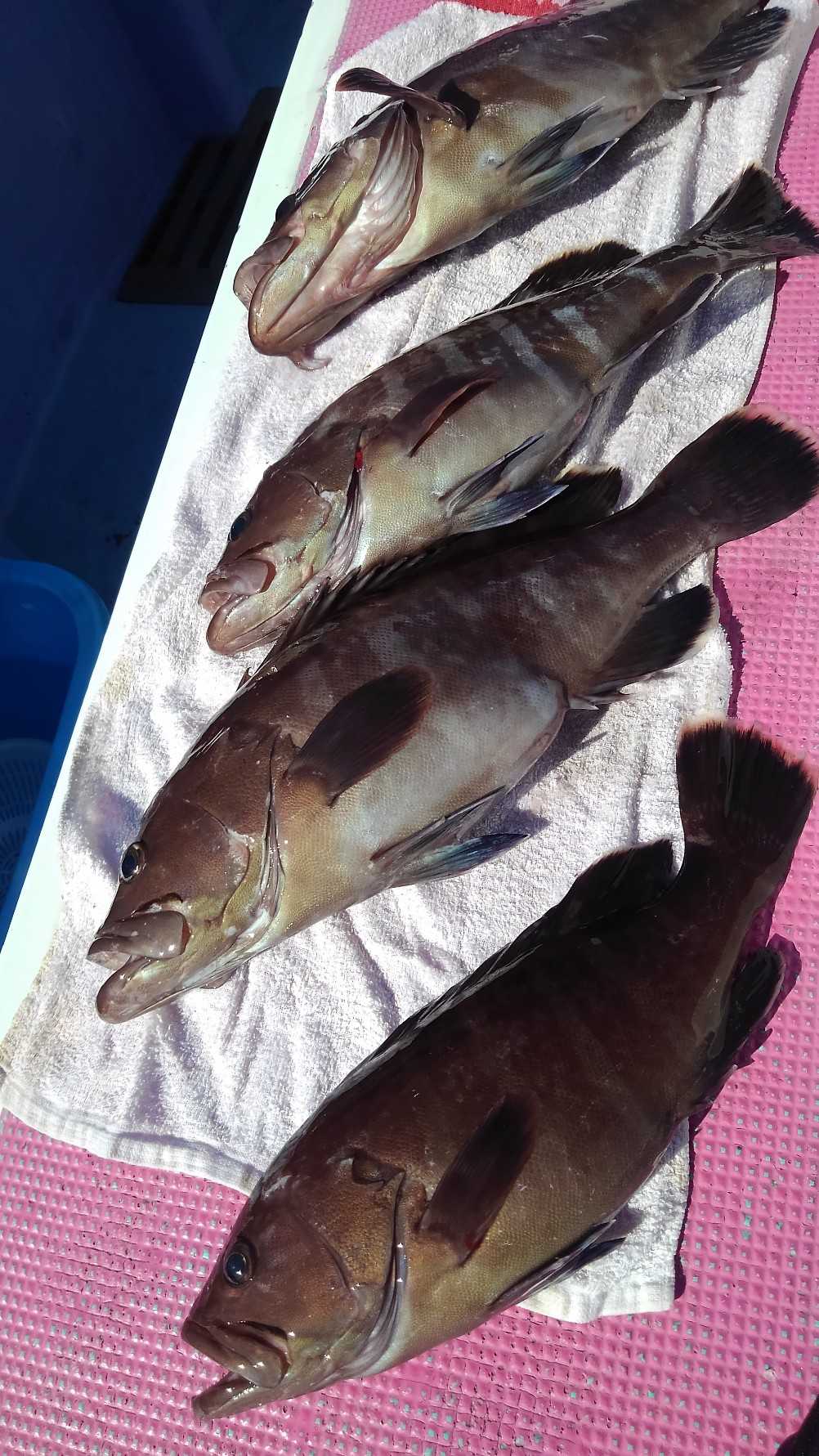 外房大原港~マハタ&ヒラメに出船しました‼️✌️ポイントは大原沖⛵️⛵️⛵️水深は40m前後を狙いました‼️👀👀👀朝の内は当たりが悪く😵サメ😡😡😡 日中に、良いポイントに入り 👍️良型揃いのマハタがバタバタと釣れて😆好調に‼️✌️終盤は、サメに邪魔されながらも、ダブルヒット😉マハタ 小サイズ~3.4kg‼️ (2.5kg前後主体)👍️ヒラメ0😵出船予定です………↓………投入時間が6時となっておりますので集合時間は4:30でお願いします🙇明日・1月10日の日曜日もマハタ&ヒラメに出船いたします✌️残り1名で満船となりますm(._.)m1月11日の成人の日もマハタ&ヒラメに出船いたします✌️今のところ8名のお客さんから予約を頂いておりますm(._.)m1月13日の水曜日もマハタ&ヒラメに出船いたします✌️今のところ4名のお客さんから予約を頂いておりますm(._.)m1月16日の土曜日もマハタ&ヒラメに出船いたします👍️今のところ4名のお客さんから予約を頂いておりますm(._.)m1月17日の日曜日もマハタ&ヒラメに出船いたします👍️今のところ3名のお客さんから予約を頂いておりますm(._.)m1月24日の日曜日もマハタ&ヒラメに出船いたします✌️今のところ4名のお客さんから予約を頂いておりますm(._.)m1月31日の日曜日もマハタ&ヒラメに出船いたします✌️おかげさまで満船になりました~\(^^)/ありがとうございますm(._.)m今後の釣り物です…………↓…………マハタ&ヒラメ根魚五目鬼カサゴ (初心者も安心 電動貸し道具あり) メヌケ (夢ではない提灯行列)一つテンヤマダイ (テンヤ カブラ タイラバゲーム) お知らせです…………↓………探見丸 スマホ対応アンテナ搭載しておりますシマノ探見丸 スマートフォンで見る事が出来ます無料アプリ配信中です(^^)v勇盛丸は、ジギング専門ではないのですが(;^_^Aジギングも乗り合いで楽しんでもらえたら、嬉しいですね(^^)bその他、お問い合わせは亘船長090 2932 35750470 62 2086までお願いしますm(._.)m大原港の優漁船の休日は、第一・第三の月曜日です(^_^)y-゜゜゜゜゜お客さんへのお願いです……↓……勇盛丸では、常にお客さんの安全を考えて操業しております【安全1番・楽しさ2番・最後に釣果はついてくる♪♪♪】《文明堂カステラcmのパクりですが………(^-^ゞ》をテーマに命を預かる商売ですので、いつも慎重かつ冷静な操船を心掛けておりますその為には、お客さんのご協力が不可欠ですので生意気な言い方かもしれませんが海の上では、マナーと船長の指示を必ず守ってくださるよう、お願いいたします