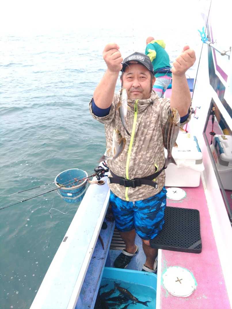 外房大原港~シマアジ&Lightタックル・イサキに出船しました‼️⛵️💨💨💨初めはシマアジです🛥️💨💨💨朝一から、シマアジの活性が良くて🐟️💨💨💨バラシもありながらも、好調に釣れました❗ 👍️シマアジ最大1.2kg‼️\(^^)/次はLightタックル・イサキです⛵️💨💨💨 卵抱の腹パンイサキの食いが良くて👏ダブル・トリプルとこちらも好調に釣れました‼️✌️デカキントキが今チャンスですね‼️\(^^)/梅雨の中卵抱イサキが期待ですね‼️👏メヌケ釣りは今後もチャーター(要相談)で出船いたします‼️⛵️💨💨💨💨💨💨💨💨💨乗船時のお願いです………↓………勇盛丸への乗船は、船長が来て、船の灯りが点灯してからお願い致しますm(_ _)m暗闇により、足元見えず、踏み外しや転倒による怪我 又は海に転落の恐れがございます😭ご協力のほど、宜しくお願いいたします。m(._.)m出船予定です…………↓…………集合時間は3:45でお願いいたしますm(._.)m明日・6月28日の水曜日は乗船のお客さんを募集中ですm(._.)m6月29日の木曜日はキントキ五目に出船いたします⛵️💨💨💨今のところ2名のお客さんから予約を頂いておりますm(._.)m6月30日の金曜日は乗船のお客さんを募集中ですm(._.)m7月の予定です………↓………7月1日の土曜日は乗船のお客さんを募集中ですm(._.)m 7月2日の日曜日はシマアジ&Lightタックル・イサキに出船いたします✌️今のところ2名のお客さんから予約を頂いておりますm(._.)m7月3日の月曜日は定休日です😪7月18日の火曜日は17日の海の日が出船する為振替定休日です😪7月22日の土曜日はキントキ五目に出船いたします🛥️💨💨💨今のところ1名のお客さんから予約を頂いておりますm(._.)m今後の釣り物と出船予定です………↓……Lightタックル・イサキ&キントキ五目をメインに出船いたします⛵️💨💨💨メヌケ(夢ではない提灯行列)*要電話確認チャーターでも出船いたします⛵️💨💨💨💨💨💨💨💨深場狙いの鬼カサゴ(初心者も安心 電動貸し道具あり) *要人数確認⛵️💨💨💨💨💨💨💨その他一つテンヤ・タイラバ🛥️💨💨💨根魚五目(多彩な釣り物で楽める)🚢💨🚢💨🚢💨エギダコ(一つテンヤマダイとのリレーも🆗‼️)⛵️💨🚢💨 お知らせです…………↓…………燃料やエサの高騰により、6月1日から1000円の値上げが大原港釣り部会で決まりました。😢ご理解の程よろしくお願い致します。m(._.)mライフジャケットレンタル バッテリーレンタル 貸竿レンタルは予約時に連絡をお願いいたしますm(._.)m※ふるさと納税 釣り船乗船券の有効期限を切れた券は使用出来ませんのでご了承下さい。m(._.)mじゃらんランキング勇盛丸載ってます✌️↓https://www.jalan.net/kankou/cit_122380000/勇盛丸Tシャツオンラインショッピングで販売してますhttps://photos.app.goo.gl/F6XZRxXSsH9RCJ4A9https://tm-label.shop-pro.jp/?pid=166252021https://tm-label.shop-pro.jp/?pid=1677829632300円/着です💴是非覗いて見てください👀👀👀PayPay支払い可能になりました。探見丸 スマホ対応アンテナ搭載しておりますシマノ探見丸 スマートフォンで見る事が出来ます無料アプリ配信中です(^^)v勇盛丸は、ジギング専門ではないのですが(;^_^Aジギングも乗り合いで楽しんでもらえたら、嬉しいですね(^^)bその他、お問い合わせは亘船長090 2932 35750470 62 2086までお願いしますm(._.)m大原港の優漁船の休日は、第一・第三の月曜日です(^_^)y-゜゜゜゜゜お客さんへのお願いです……↓……勇盛丸では、常にお客さんの安全を考えて操業しております⛵️⛵️⛵️💨人数制限、船内消毒などの感染対策をして⚠️【安全1番・楽しさ2番・最後に釣果はついてくる♪♪♪】《文明堂カステラcmのパクりですが………(^-^ゞ》をテーマに命を預かる商売ですので、いつも慎重かつ冷静な操船を心掛けておりますその為には、お客さんのご協力が不可欠ですので生意気な言い方かもしれませんが海の上では、マナーと船長の指示を必ず守ってくださるよう、お願いいたしますm(._.)m