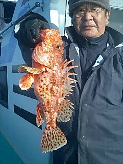 水深60m~80mを狙い、鬼カサゴが船中4匹釣れましたスマイル
