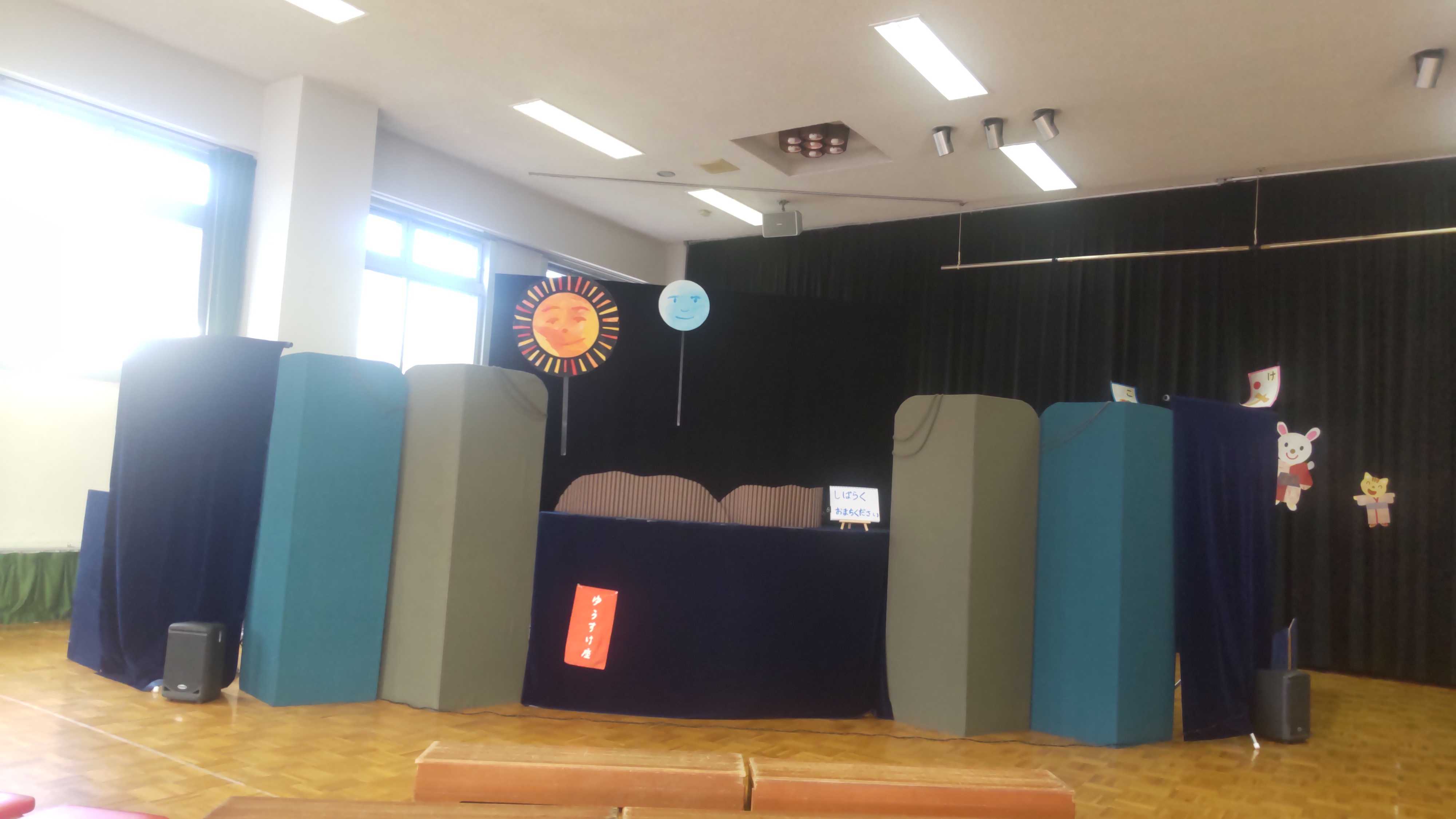 芦屋市の子育て支援担当の方から連絡があり、0~2歳と保護者の方を対象に幼稚園の遊戯室で人形劇を上演することになりました。当日は湯遅延の児童全員も観ることになったのでにぎやかで楽しい上演会となりました。