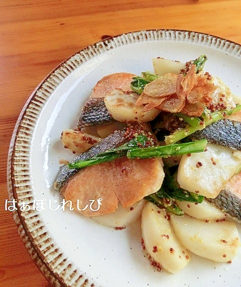 鮭とかぶのソテー♪マスタード風味✿料理名:鮭とかぶのソテー マスタード風味作者: はぁぽじ■材料(2~3人分)生鮭 / 4切れ(140g)塩、こしょう(下味用) / 少々小麦粉 / 適量(大さじ1/2くらい)かぶ / 2個かぶの葉 / かぶ1個分○粒マスタード / 大さじ1○オリーブオイル / 大さじ1○レモン汁 / 大さじ1/2〇塩 / 少々○あらびき黒胡椒 / 小さじ1/4にんにく(スライス) / 1かけオリーブオイル / 大さじ1/2■レシピを考えた人のコメント粒マスタードを使ったソースなので辛味は気になりません♪焼いた鮭と少し歯ごたえの残ったかぶによくあいます(^-^)詳細を楽天レシピで見る→━━━━━━━━━━━━━━━━━━…↓↓ ポイントが貯まるレシピ サイト ↓↓>>最短約 30 秒!▼無料▼会員登録<<━━━━━━━━━━━━━━━━━━…