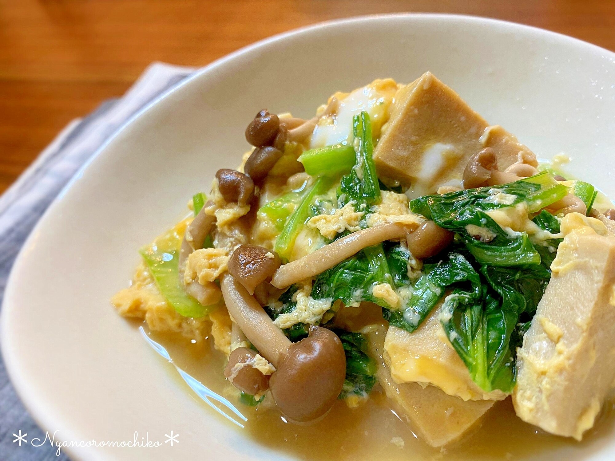 じゅわっと優しい♡高野豆腐と小松菜の卵とじ料理名:高野豆腐と小松菜の卵とじ作者: にゃんころもち子■材料(2〜3人分)高野豆腐 / 1個(20g)小松菜 / 1〜2株(70g前後)しめじ / 大1/2株(70〜80g)卵 / 2個□だし汁(水+ほんだし) / 200cc+小さじ1/2□砂糖・みりん・酒 / 各小さじ2(6g・12g・10g)□しょうゆ / 小さじ2(12g)■レシピを考えた人のコメント甘めの出汁で煮た高野豆腐と小松菜・しめじを卵でとじました。高たんぱくで栄養価が高い簡単副菜です♪詳細を楽天レシピで見る→━━━━━━━━━━━━━━━━━━…↓↓ ポイントが貯まるレシピ サイト ↓↓>>最短約 30 秒!▼無料▼会員登録<<━━━━━━━━━━━━━━━━━━…