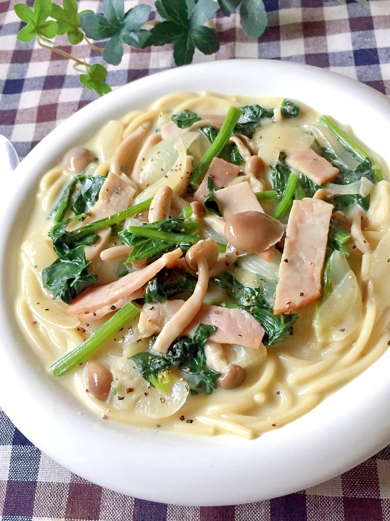 簡単美味♡クリームスープパスタ料理名:クリームスープパスタ作者: みさきらりんず■材料(4人分)パスタ / 4人分ほうれん草 / 1把玉ねぎ / 中1個しめじ / 1株ハムorベーコン / 4〜5枚バター / 15gおろしニンニク / 小さじ1◎水 / 200ml◎顆粒コンソメ / 大さじ2◎みりん / 大さじ2★牛乳 / 300ml★ブラックペッパー / 少々★塩 / 少々■レシピを考えた人のコメント寒い季節には温かいスープパスタで体の中から温まりましょ(*´꒳`*)ほうれん草やハムなどクリーム系と相性の良い具材をたっぷり入れました♫詳細を楽天レシピで見る→━━━━━━━━━━━━━━━━━━…↓↓ ポイントが貯まるレシピ サイト ↓↓>>最短約 30 秒!▼無料▼会員登録<<━━━━━━━━━━━━━━━━━━…
