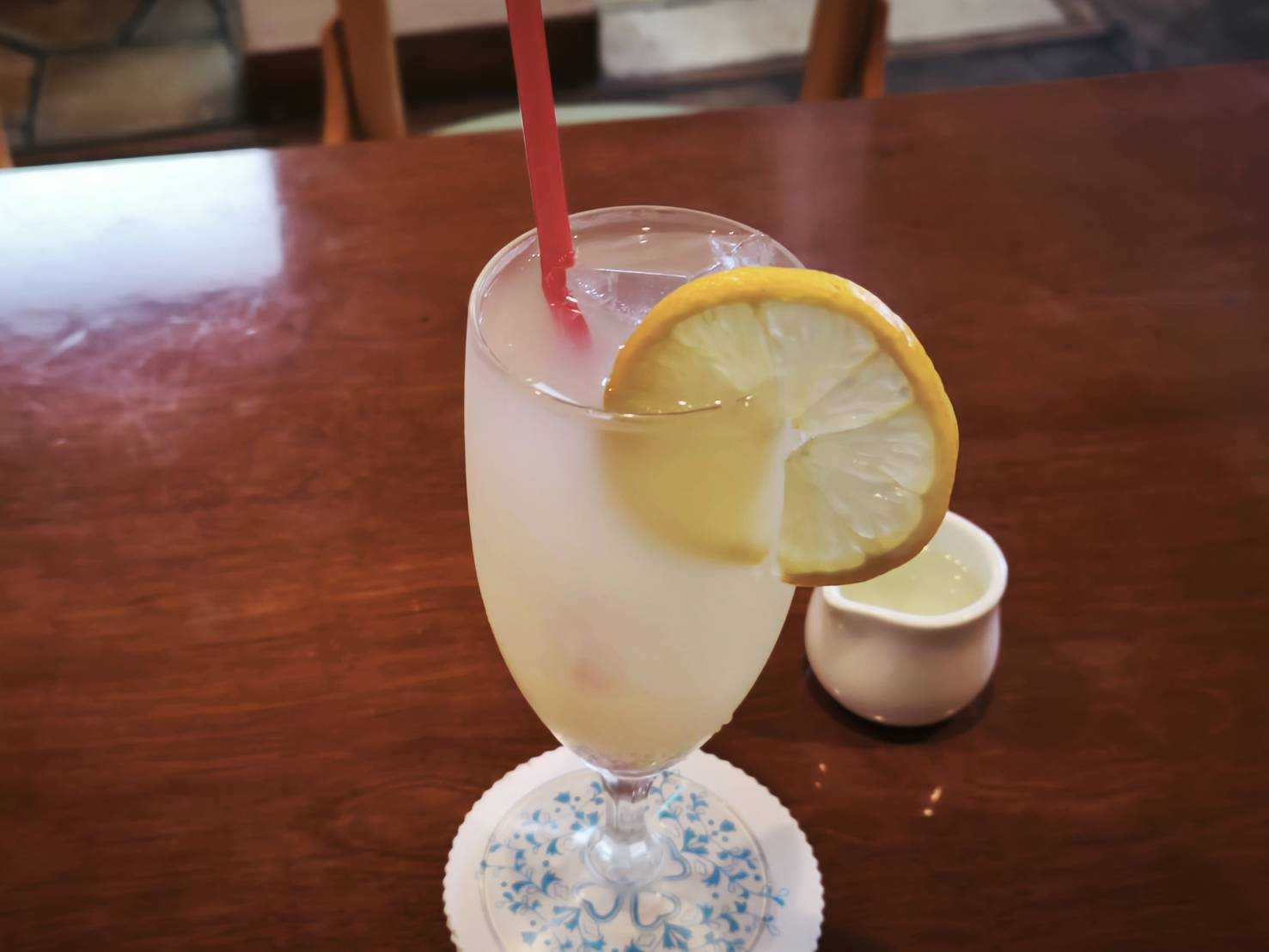 喫茶店さんでごはんレモンジュース(血圧の薬増やされたのでグレープフルーツジュースは控えました)きのこのボロネーゼケーキセット(ゆず)