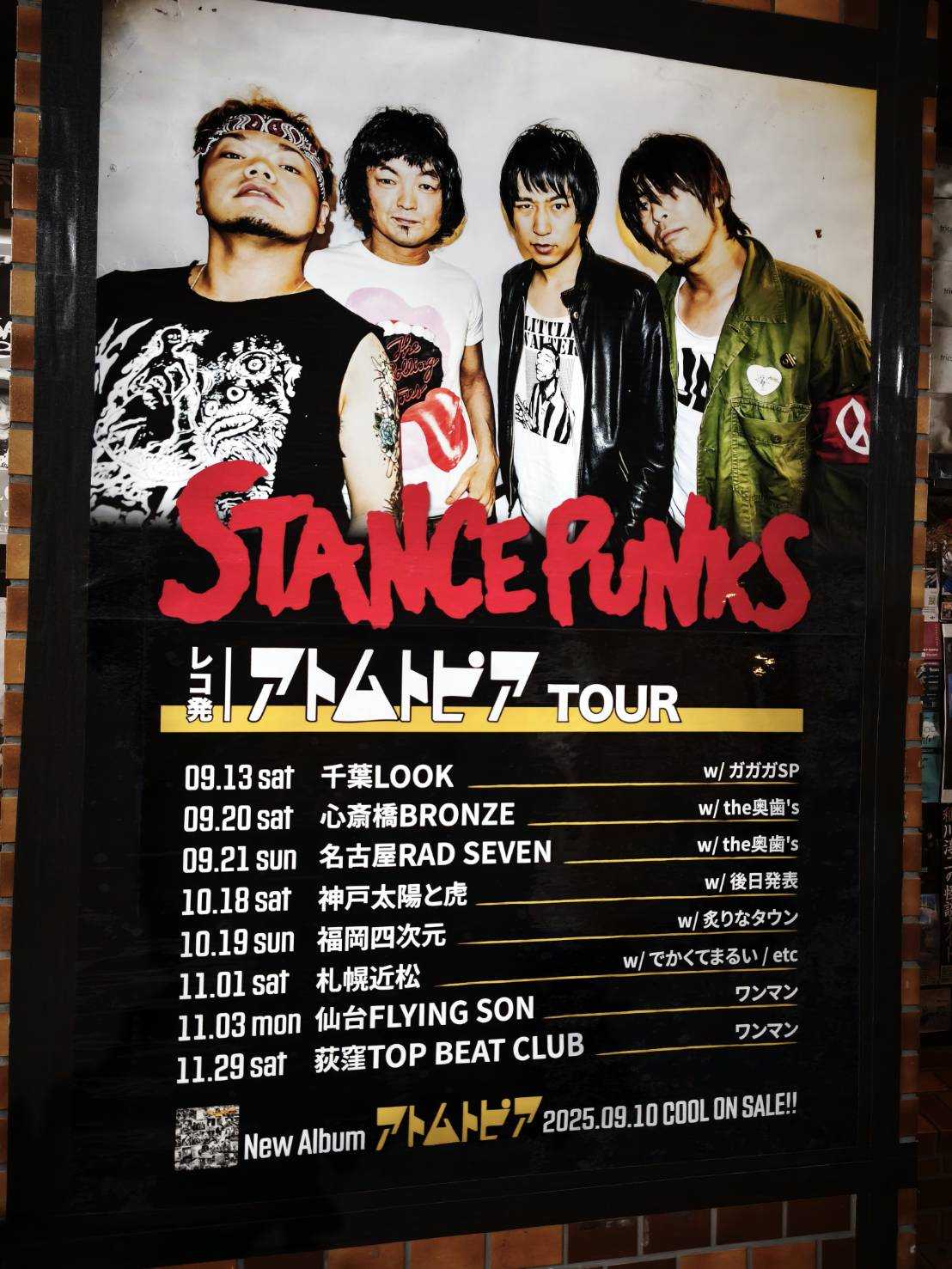 スタンスパンクス/ガガガSPライブ千葉Look25年9月13日楽しかった。攻めのライブハウスでステージと近かった。スタッフさんがダイブで運ばれる人を戻すのが面白かった。ツルさんが体調悪くなっちゃって心配だったガガガSPはカバーアルバムからGoingSteadyのもしも君が泣くならばやったライブハウス入るときに、後ろの人が学生で二人連れ、学生証忘れてて差額を払うって言ってたけど、今度から持ってきてっていって入らせてた。優しいね