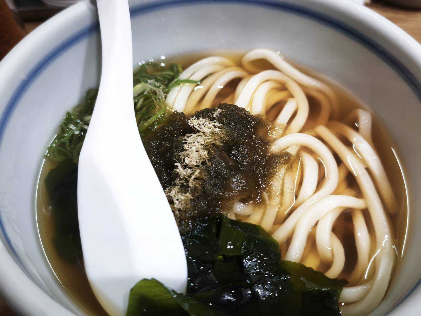 中野駅北口うどん嵐さんでごはんとろろ昆布・わかめうどん揚げたて天ぷら3種