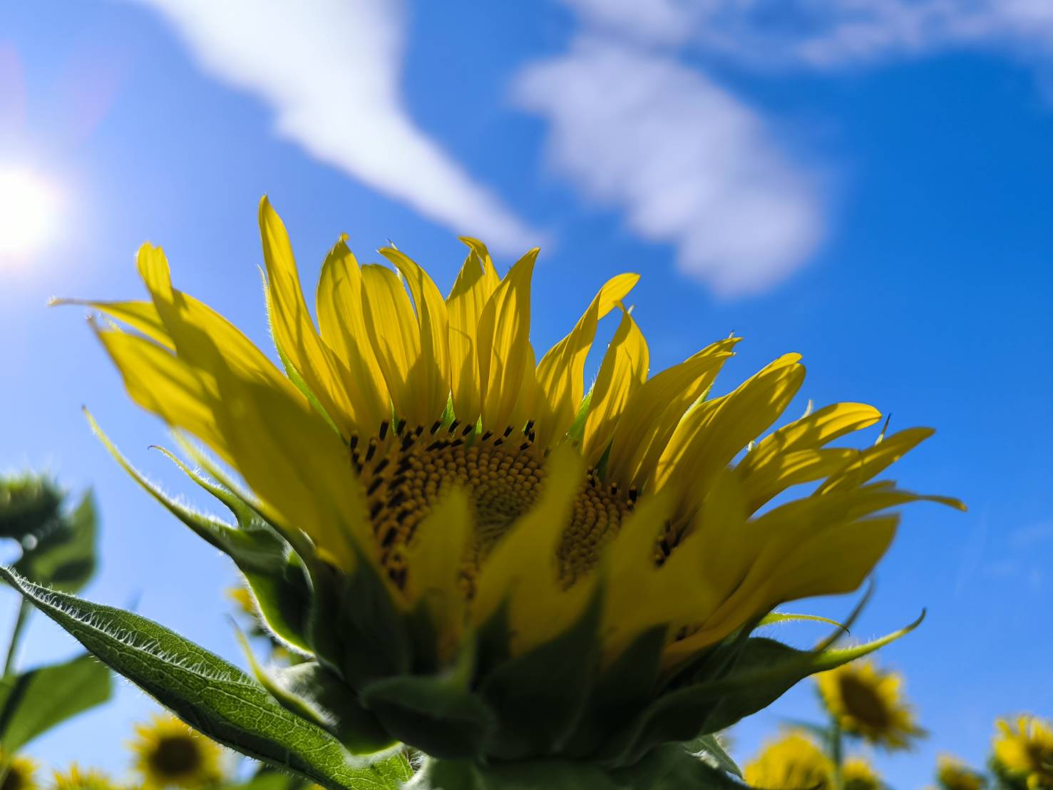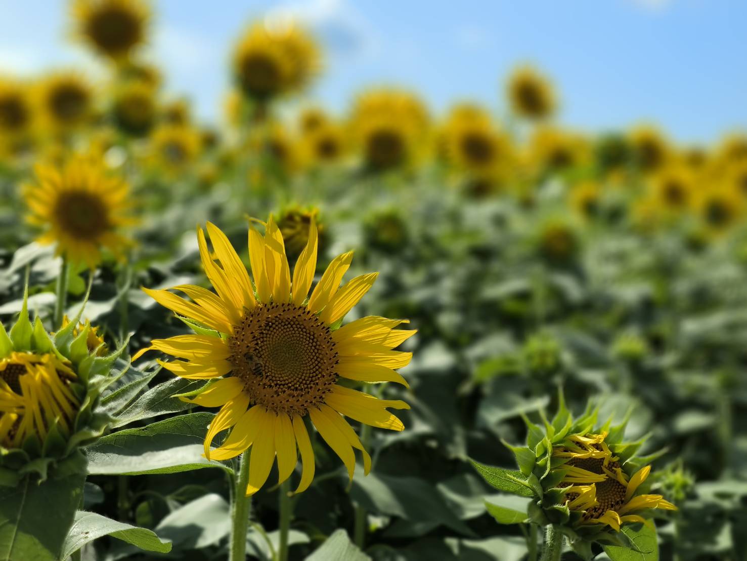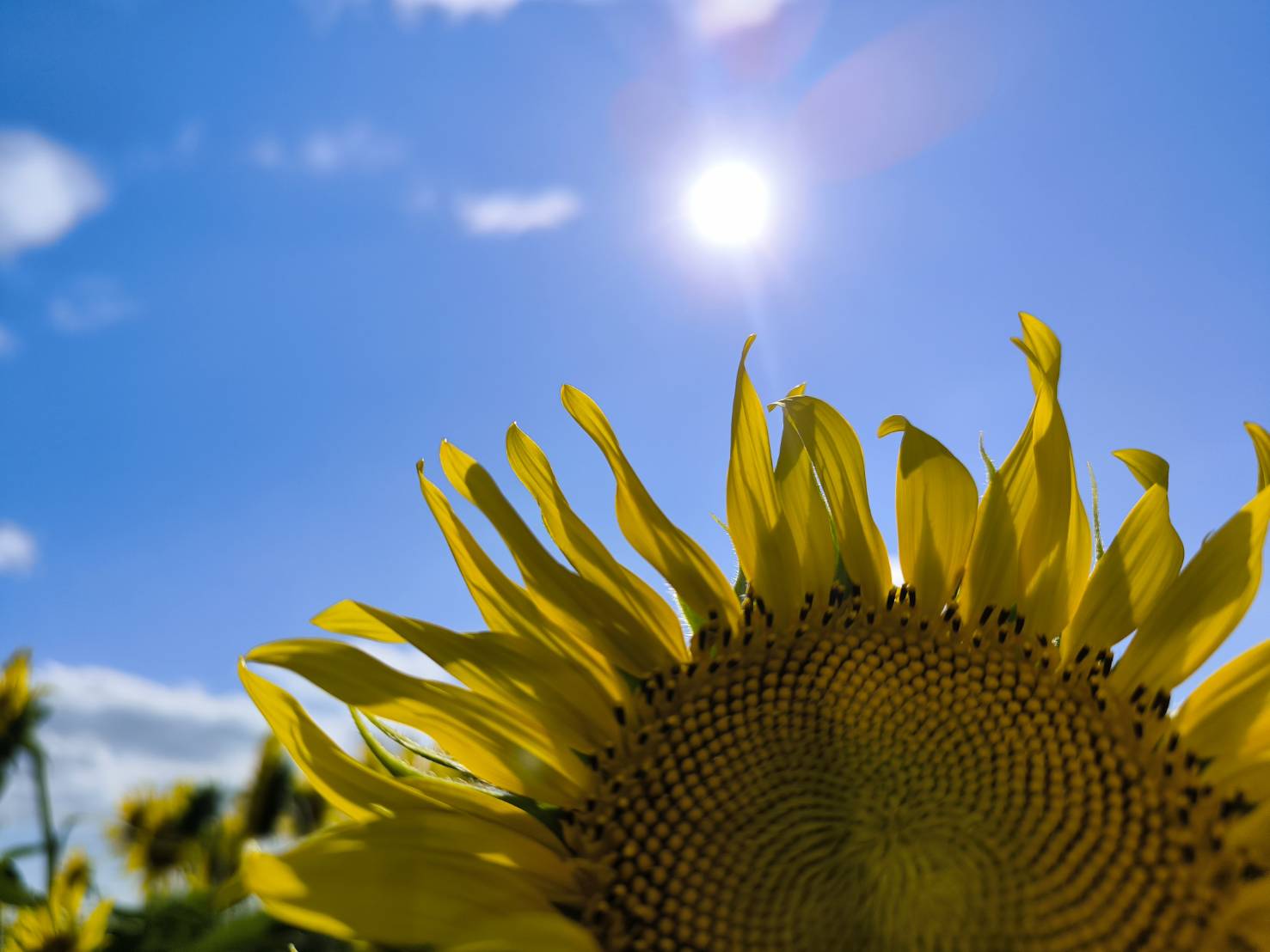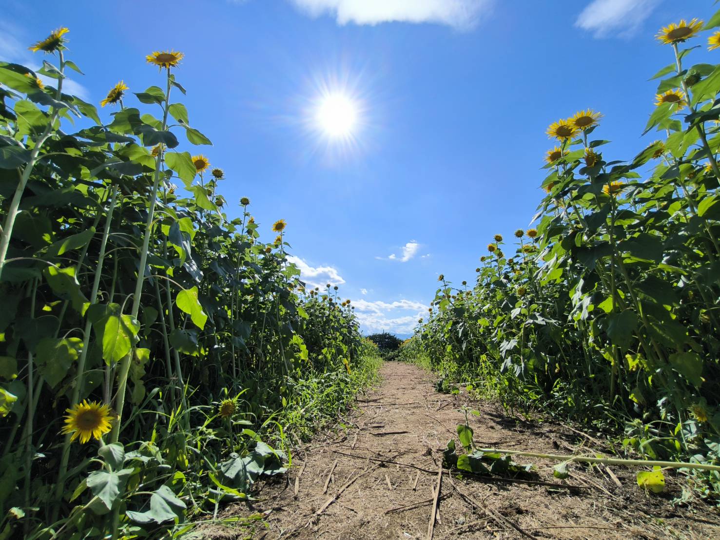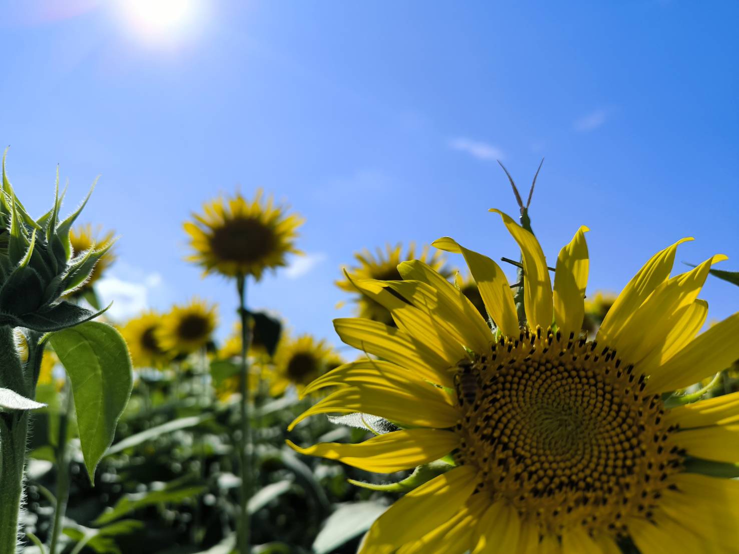 時期をずらして植えられたひまわりたちが良く、暑さに負けず伸びてました。きれい。